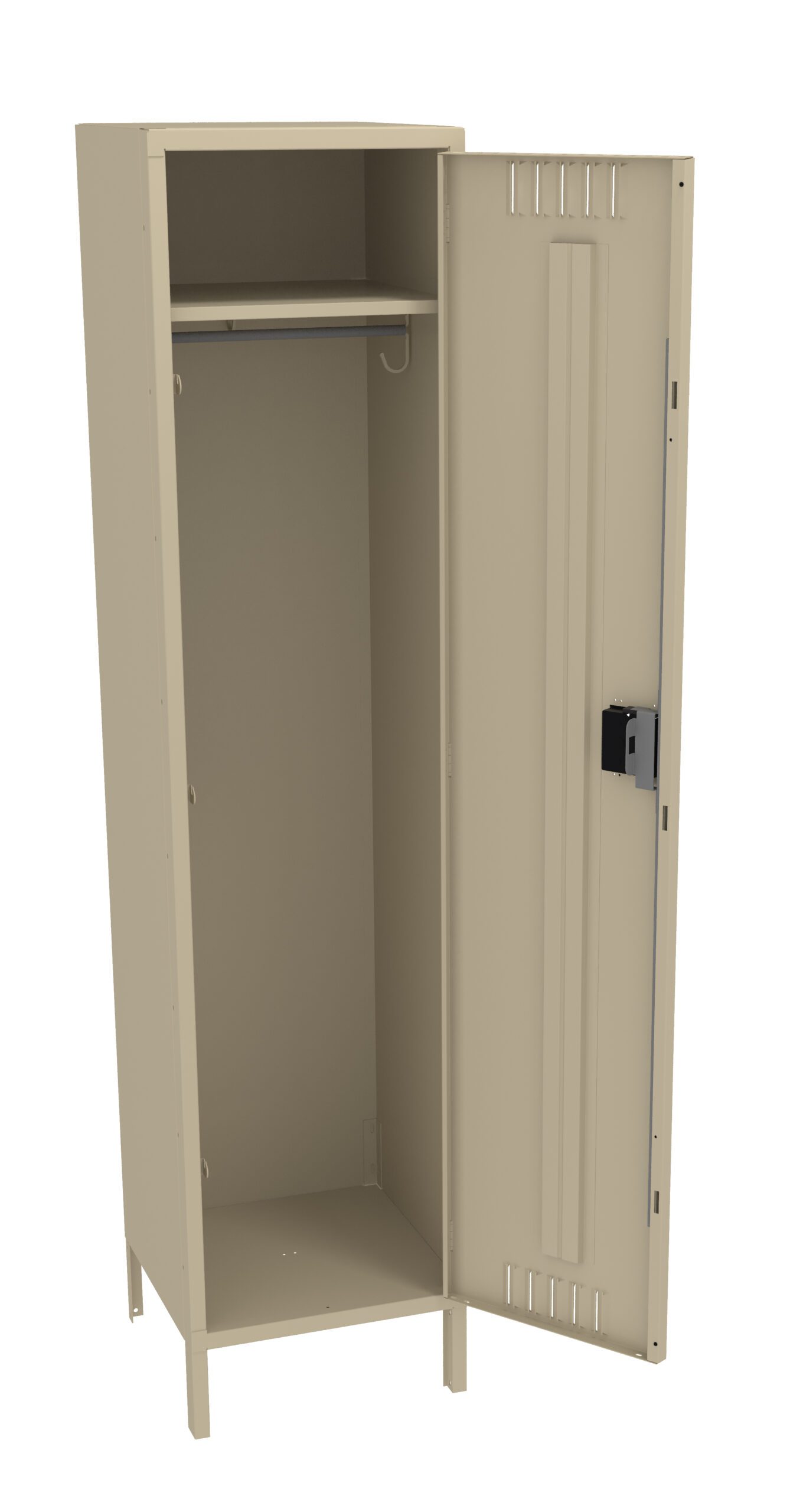 Single Tier Lockers are our most popular general purpose locker, ideal for factories, schools, hospitals. Three coat hooks per opening. Positive 3 point locking system on doors. Flush louvers for ventilation. Door stiffeners add rigidity.