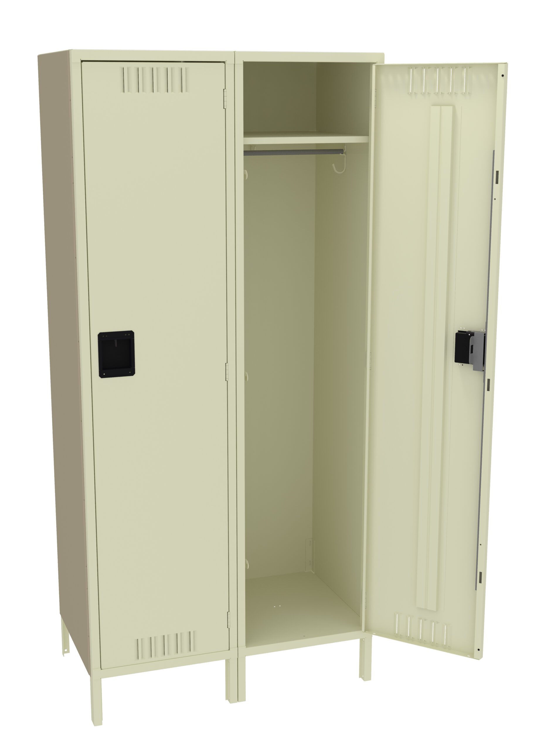 Tennsco 18″ W Two-Wide Assembled Single Tier Locker With Legs, Champagne/Putty