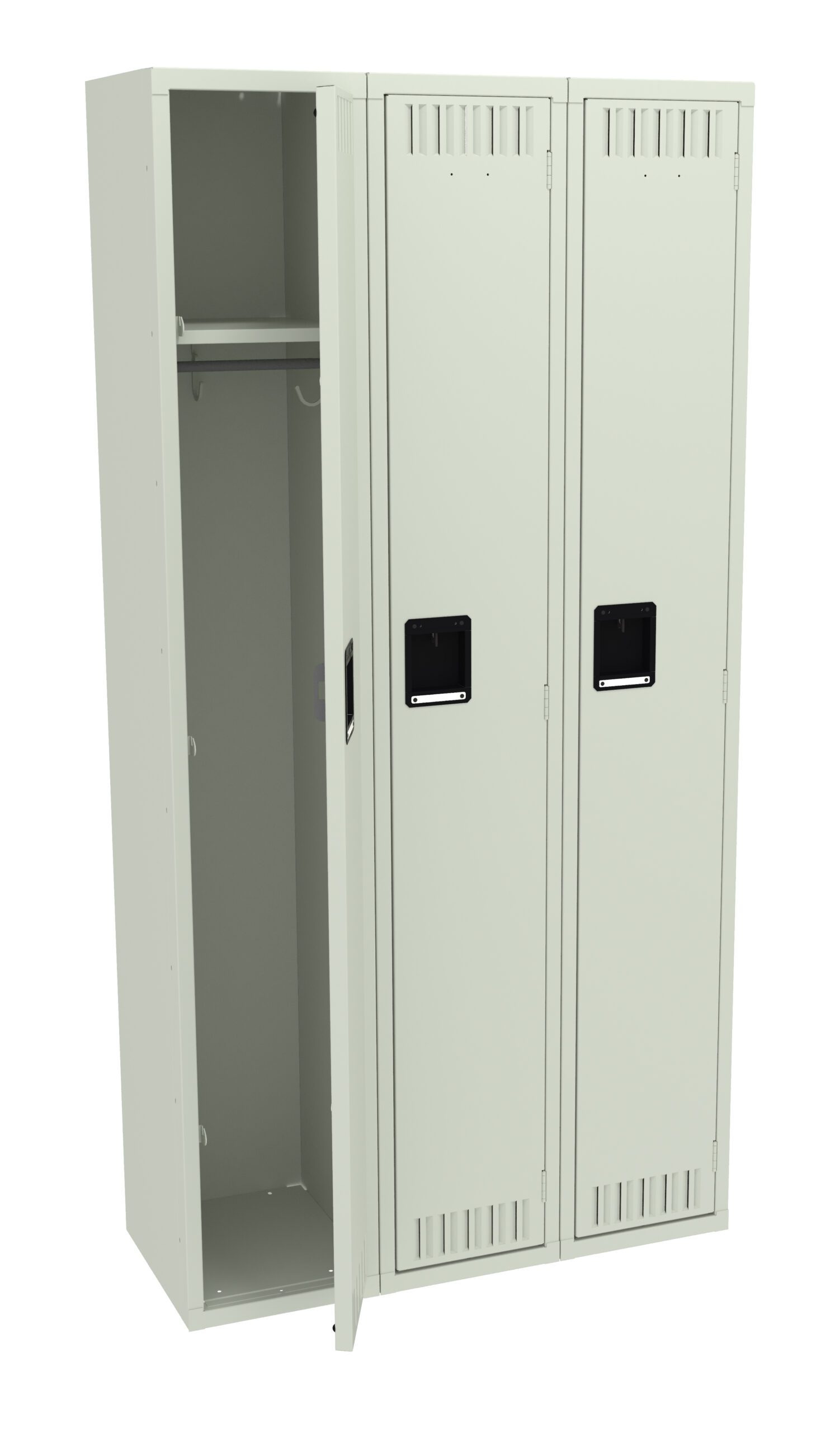 Single Tier Lockers are our most popular general purpose locker, ideal for factories, schools, hospitals. Three coat hooks per opening. Positive 3 point locking system on doors. Flush louvers for ventilation. Door stiffeners add rigidity.