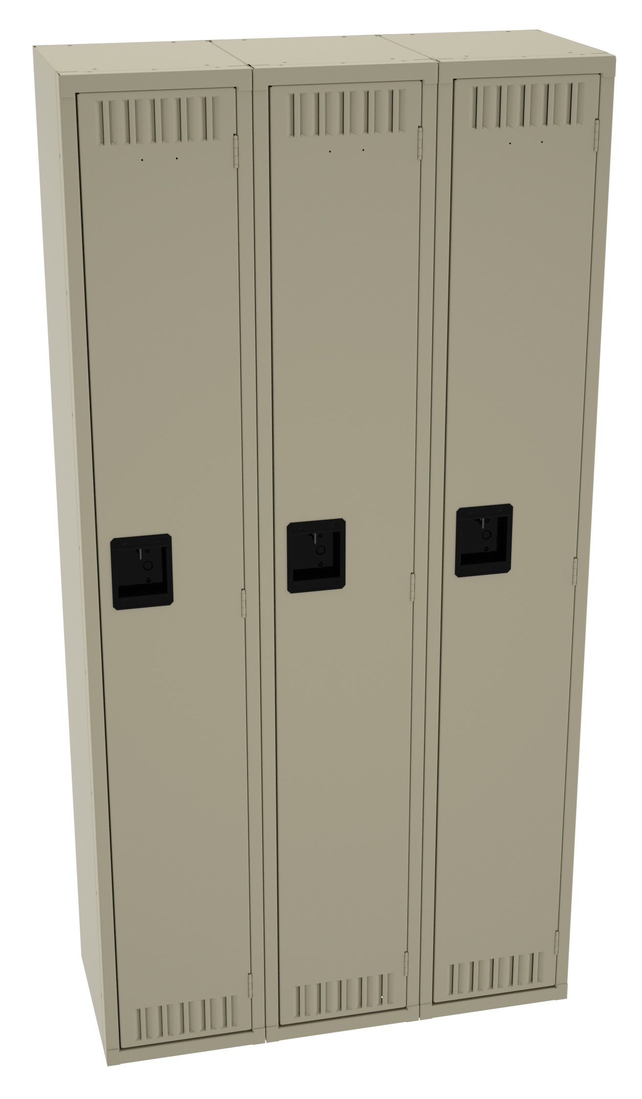 Single Tier Lockers are our most popular general purpose locker, ideal for factories, schools, hospitals. Three coat hooks per opening. Positive 3 point locking system on doors. Flush louvers for ventilation. Door stiffeners add rigidity.