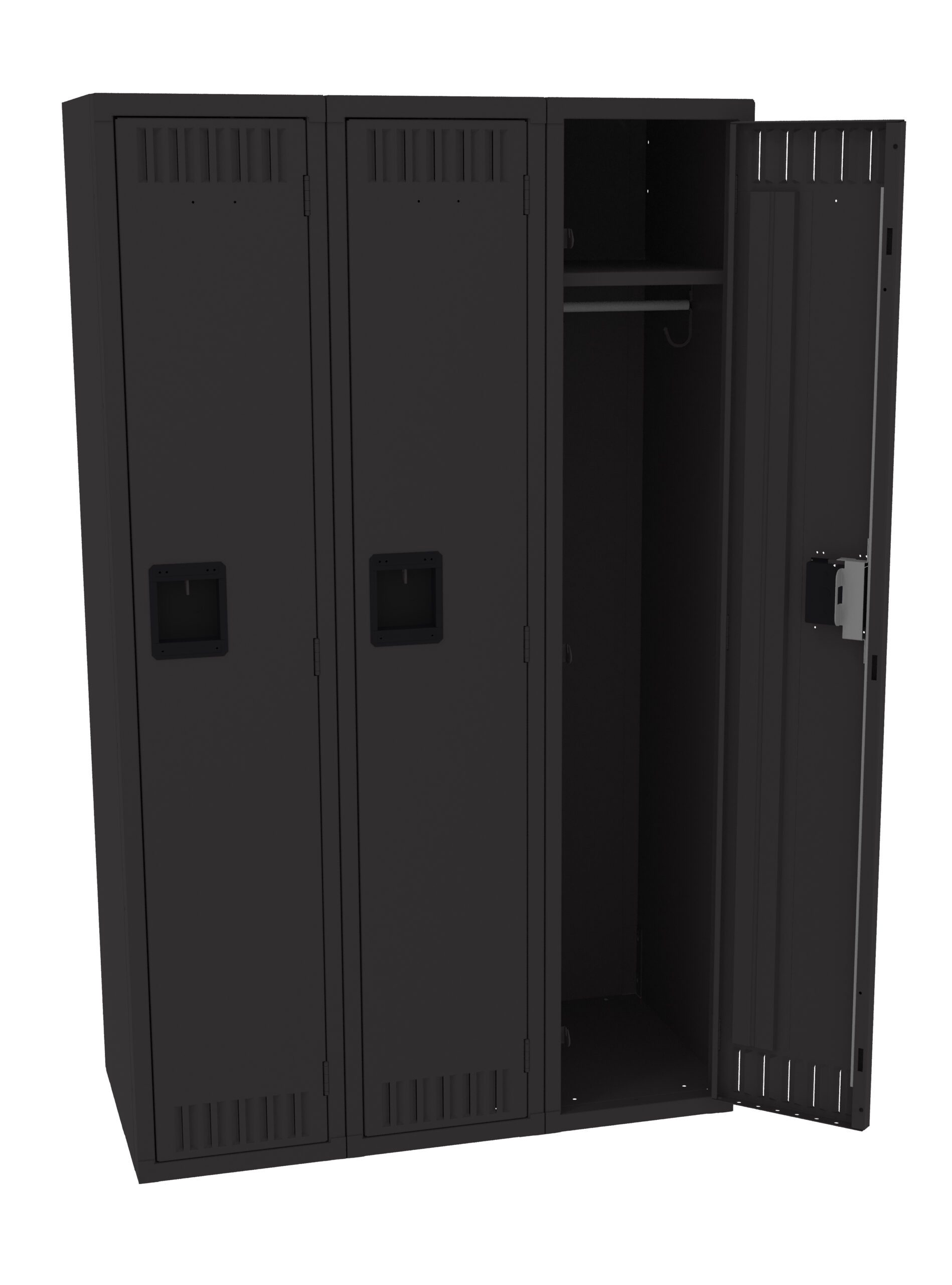 Single Tier Lockers are our most popular general purpose locker, ideal for factories, schools, hospitals. Three coat hooks per opening. Positive 3 point locking system on doors. Flush louvers for ventilation. Door stiffeners add rigidity.
