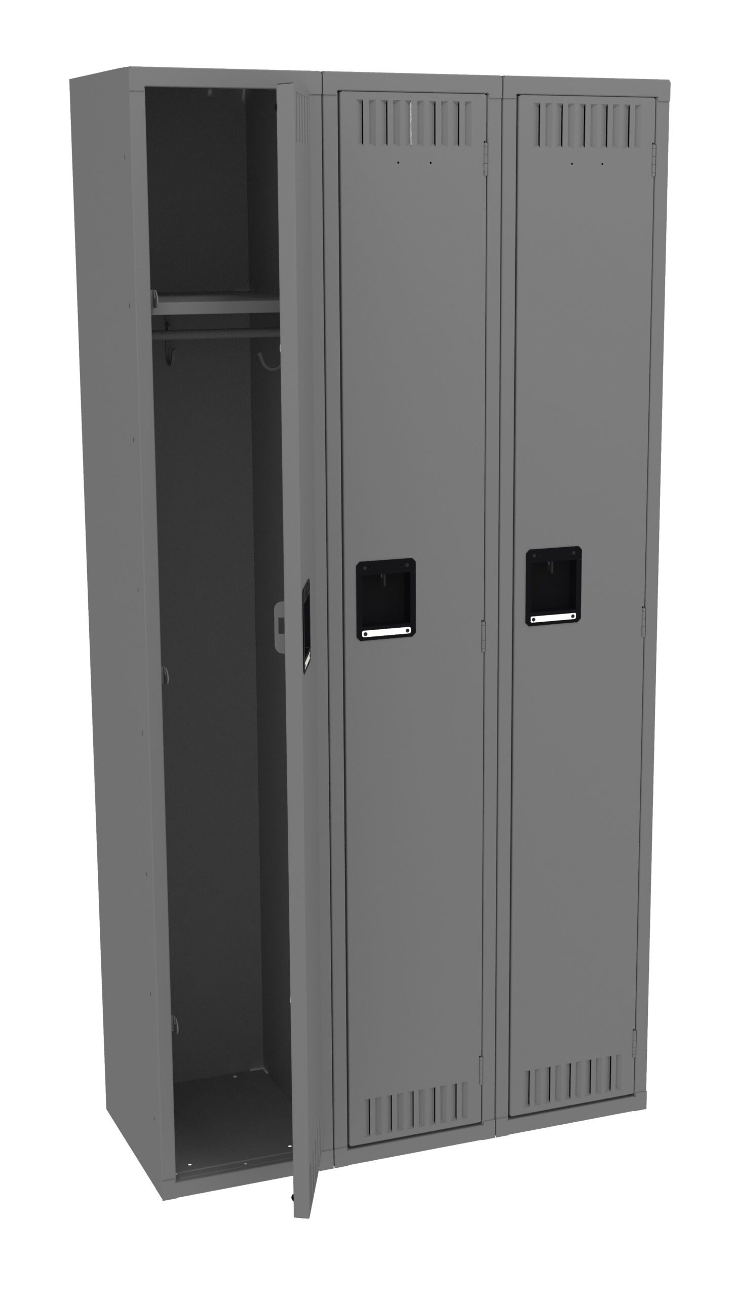 Single Tier Lockers are our most popular general purpose locker, ideal for factories, schools, hospitals. Three coat hooks per opening. Positive 3 point locking system on doors. Flush louvers for ventilation. Door stiffeners add rigidity.
