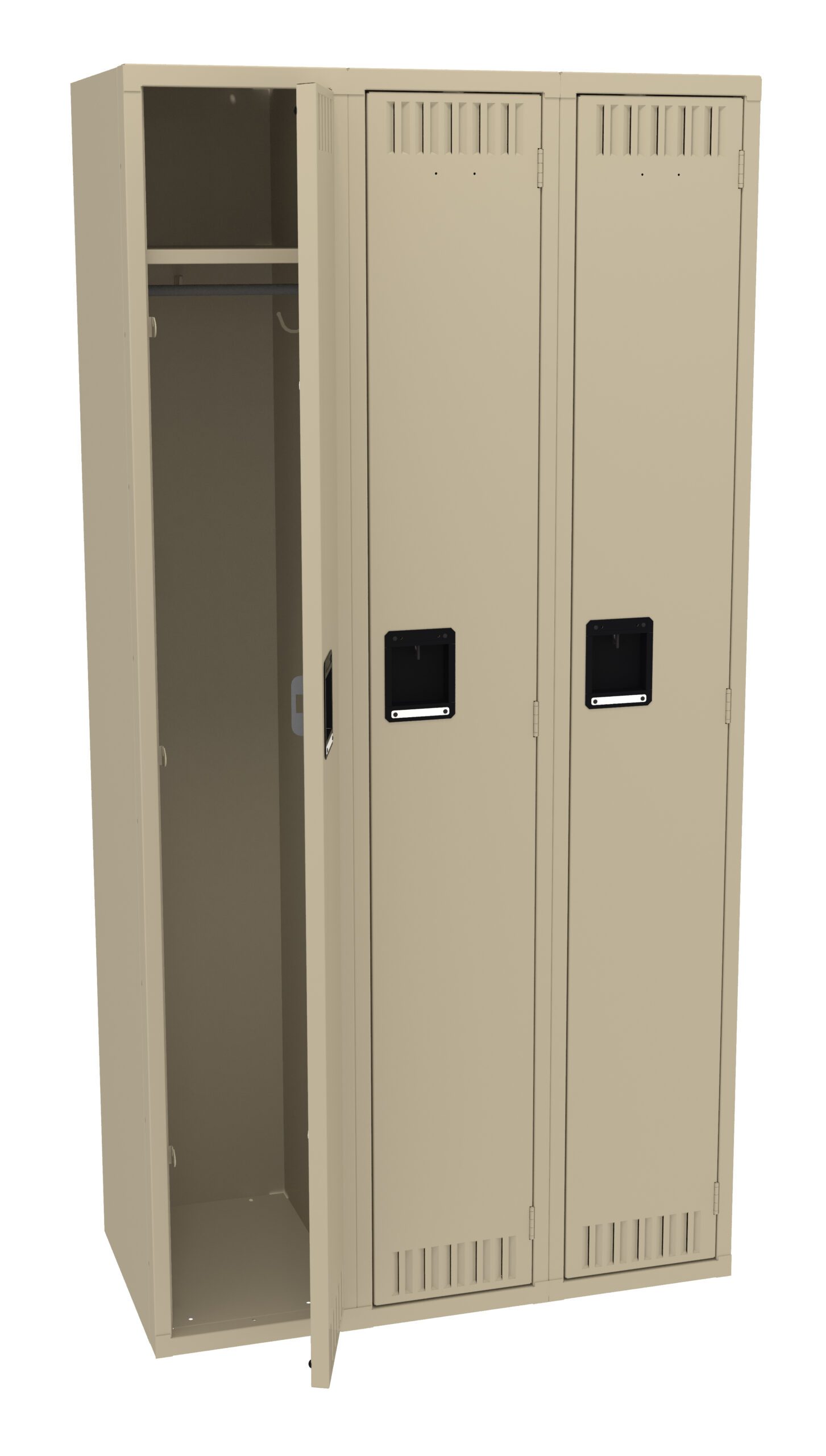 Single Tier Lockers are our most popular general purpose locker, ideal for factories, schools, hospitals. Three coat hooks per opening. Positive 3 point locking system on doors. Flush louvers for ventilation. Door stiffeners add rigidity.