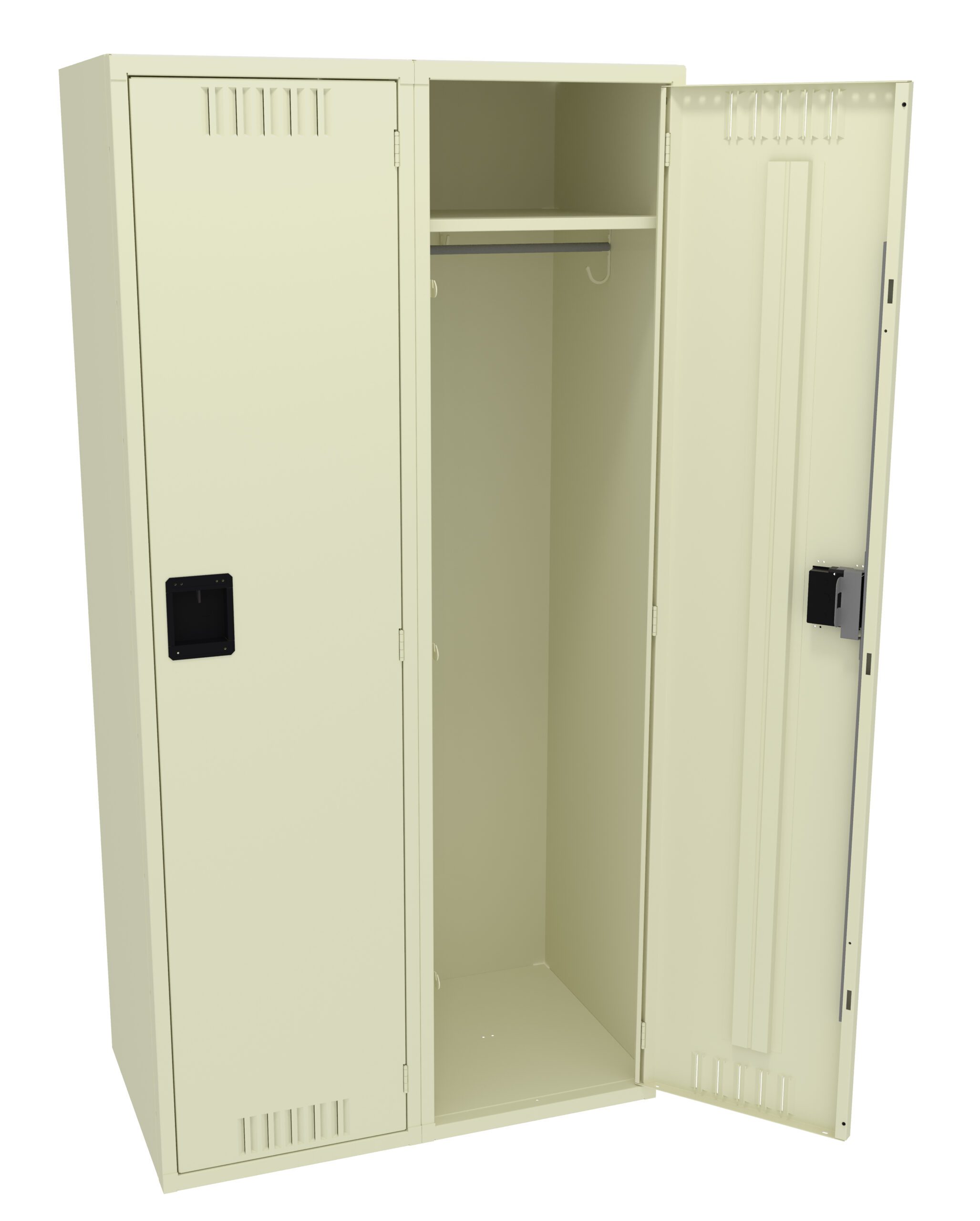 Single Tier Lockers are our most popular general purpose locker, ideal for factories, schools, hospitals. Three coat hooks per opening. Positive 3 point locking system on doors. Flush louvers for ventilation. Door stiffeners add rigidity.