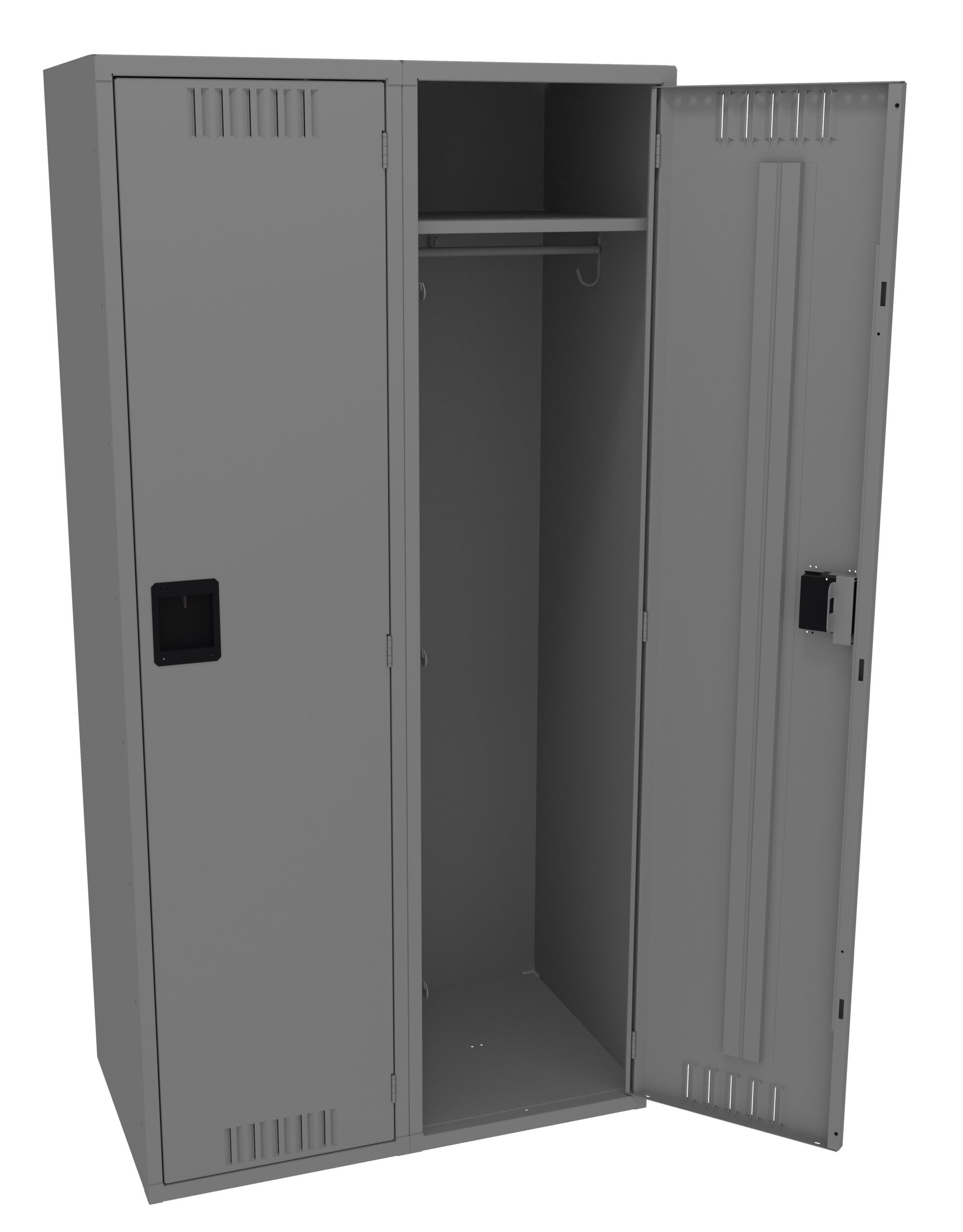 Single Tier Lockers are our most popular general purpose locker, ideal for factories, schools, hospitals. Three coat hooks per opening. Positive 3 point locking system on doors. Flush louvers for ventilation. Door stiffeners add rigidity.