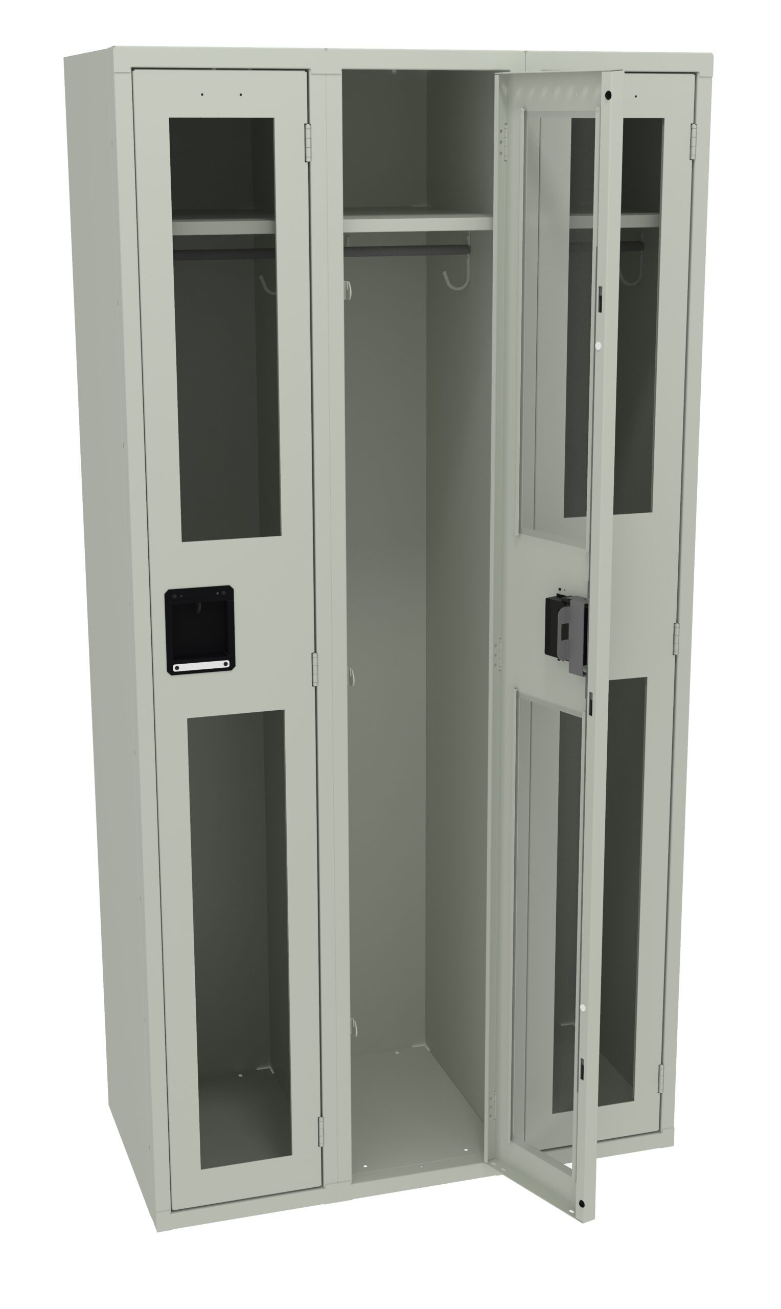 Single Tier Lockers are our most popular general purpose locker, ideal for factories, schools, hospitals. Clear yet strong acrylic doors offer visibility of locker contents for security reasons. Secure acrylic door panels are positioned in steel channels and riveted to maintain the door’s integrity. Welded door frame is constructed of 16-gauge steel for added rigidity. Steel locking bar offers strength, while spring actuated latches provide secure and quiet latch operation. Extra-strong five-knuckle hinge with secured pin offers added content protection and long-life.