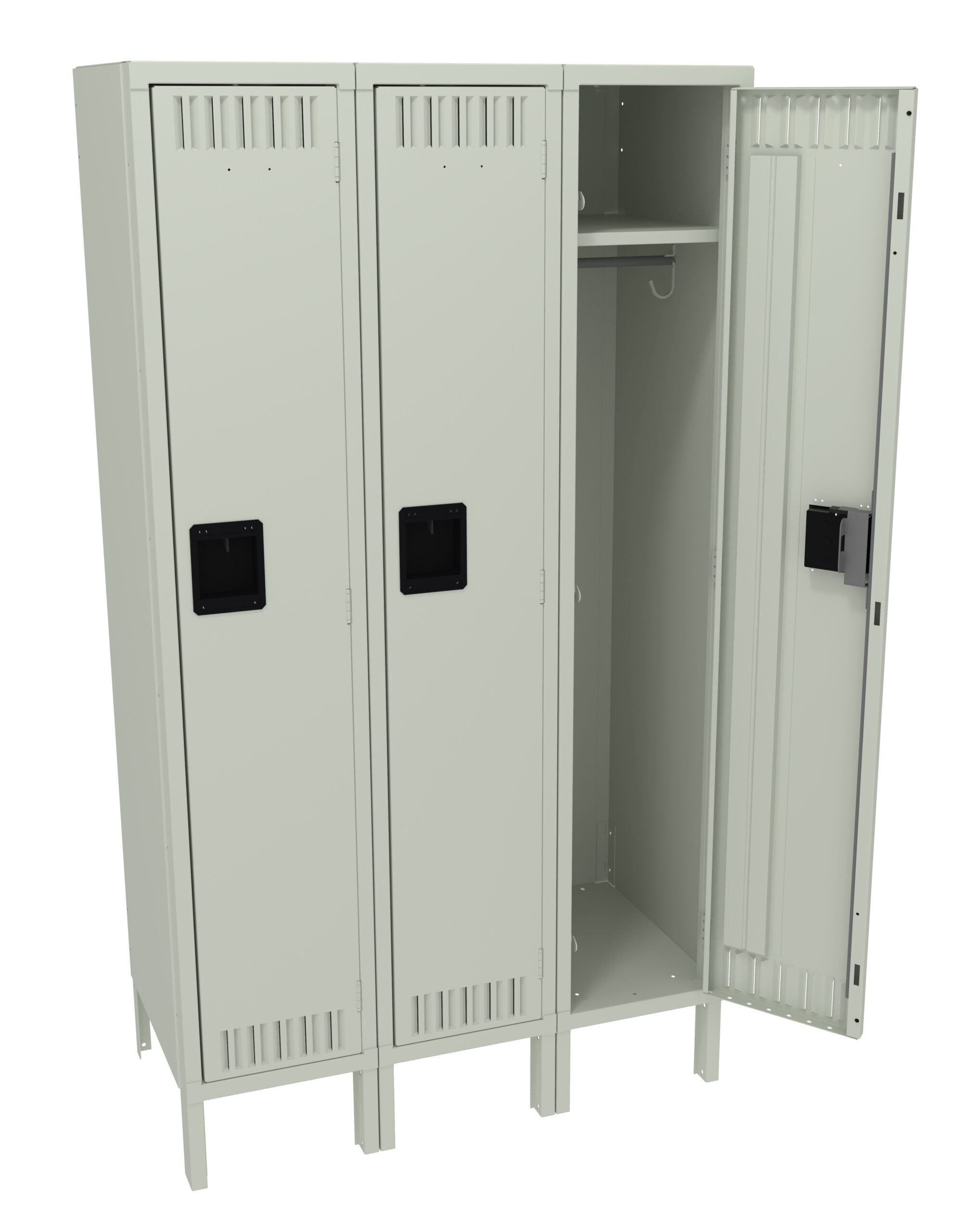 Tennsco 45″ W Three-Wide Assembled Single Tier Locker With Legs, Light Grey – TO-STS-151560-3-LGY