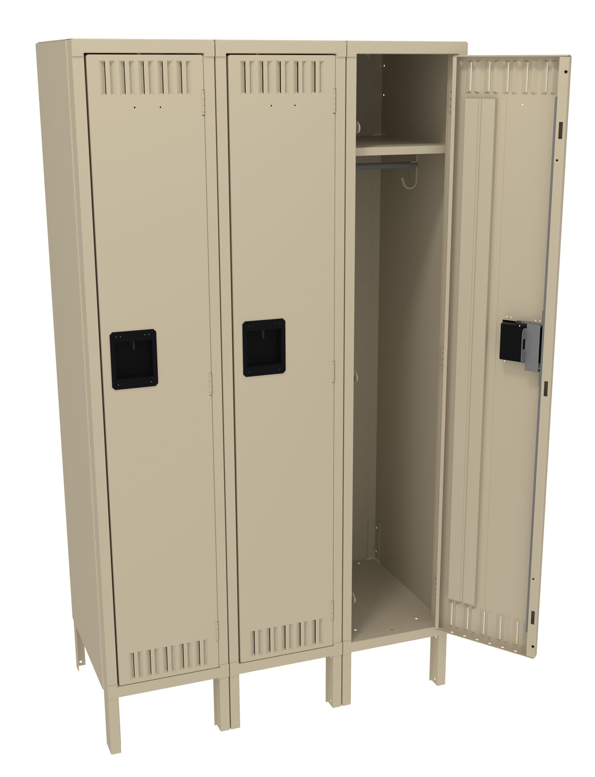 Tennsco 45″ W Three-Wide Assembled Single Tier Locker With Legs, Sand – TO-STS-151560-3-SND
