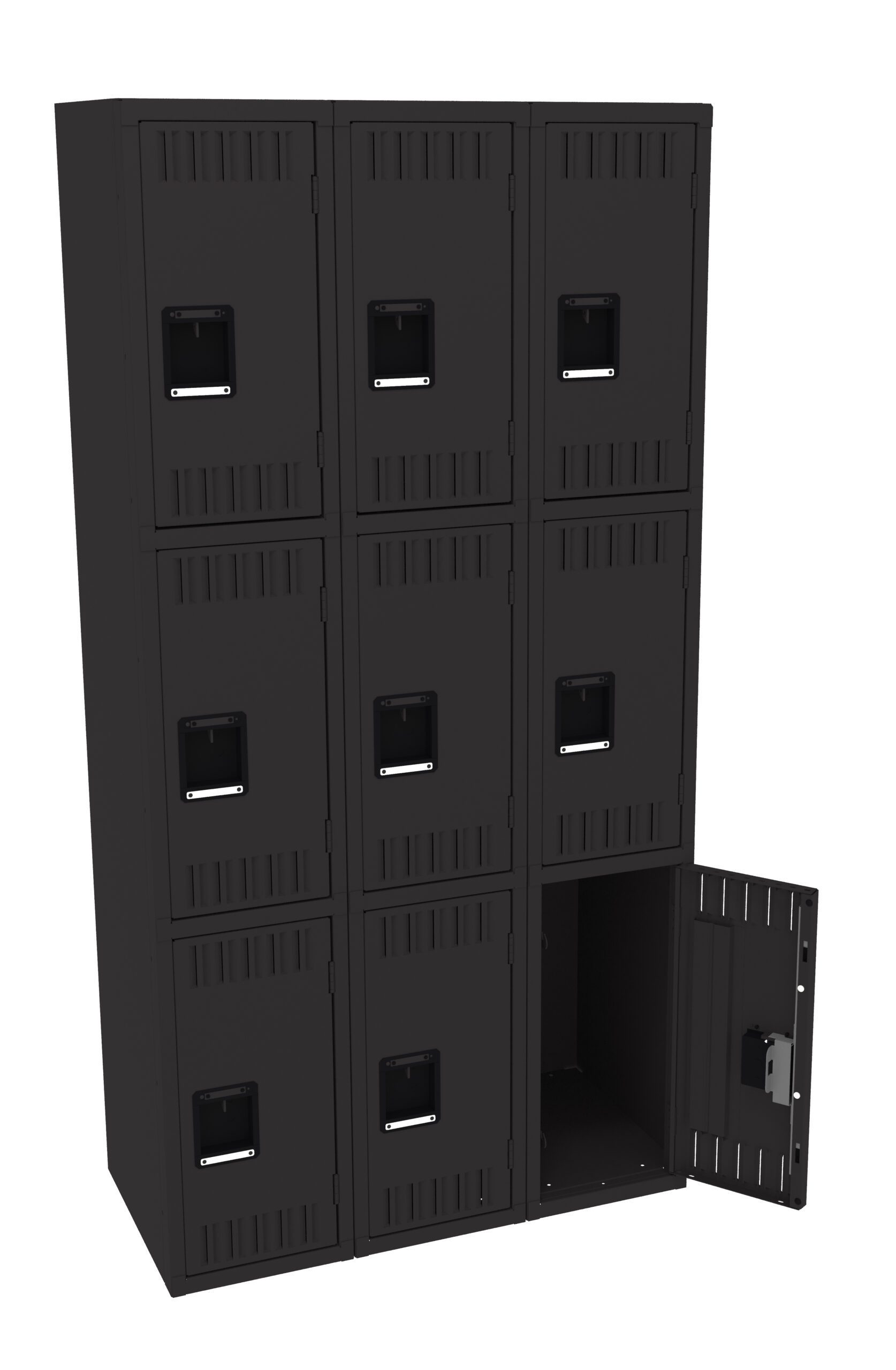 Tennsco 12″ W Three-Wide Assembled Triple Tier Locker Without Legs, Black – TO-TTS-121824-C-BLK