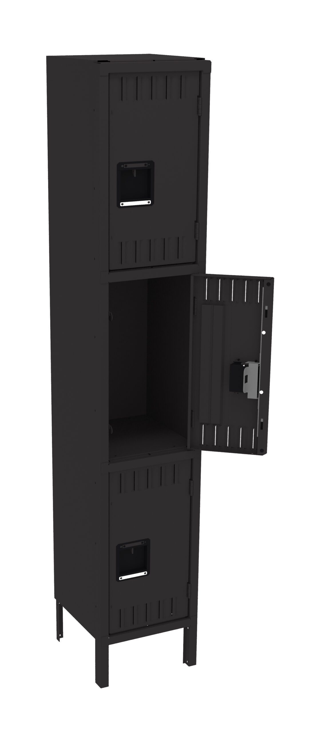 Tennsco 15″ W One-Wide Assembled Triple Tier Locker With Legs, Black – TO-TTS-151524-1-BLK