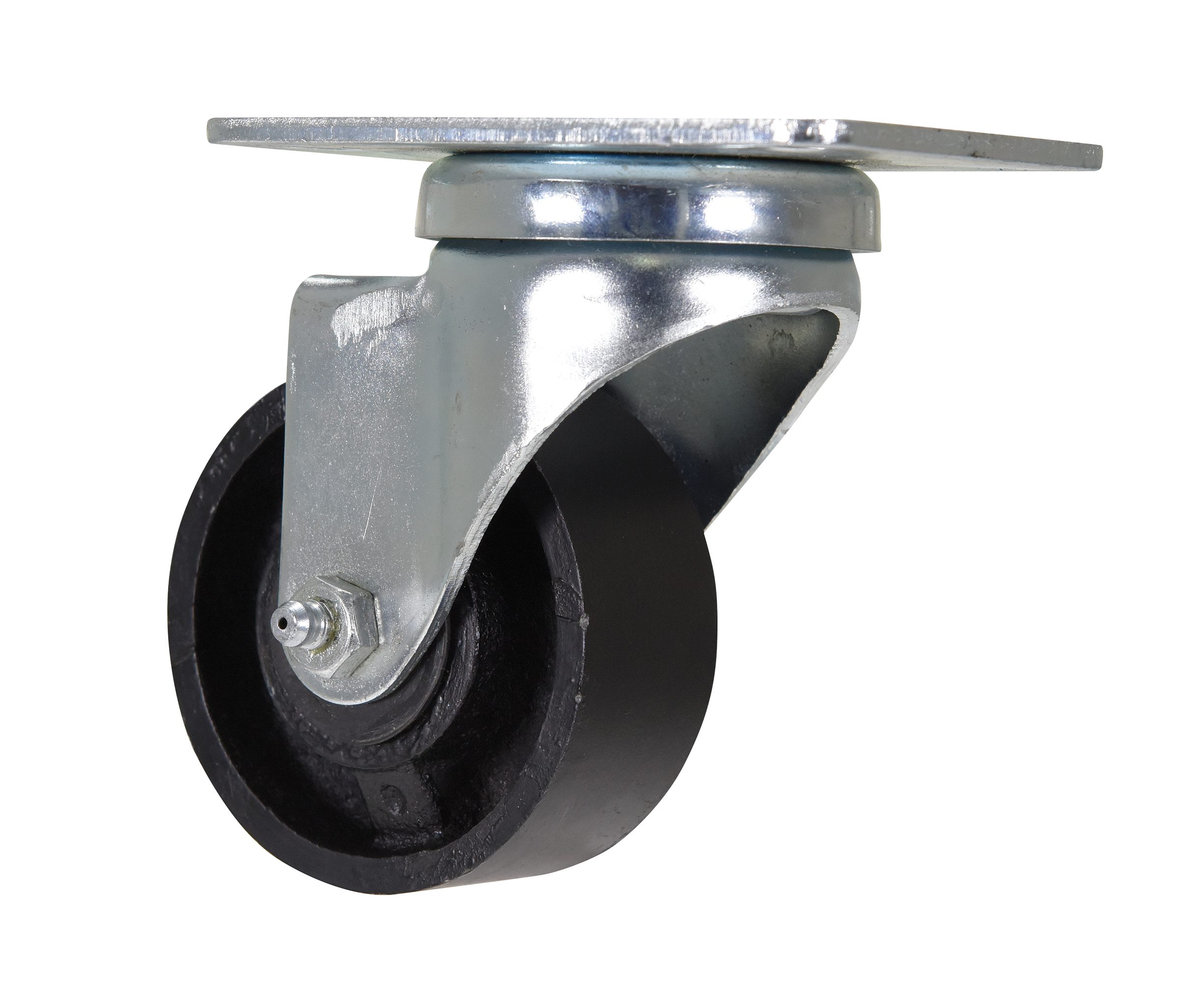 Cast iron casters are a cost efficient way of getting industrial carts and dollies back to running smoothly. The units are abrasion resistant when transporting substantial weight. Swivel model allows the user to change directions and maintain increased control over the device. Simple attachment for immediate use upon installation. Black tread color.