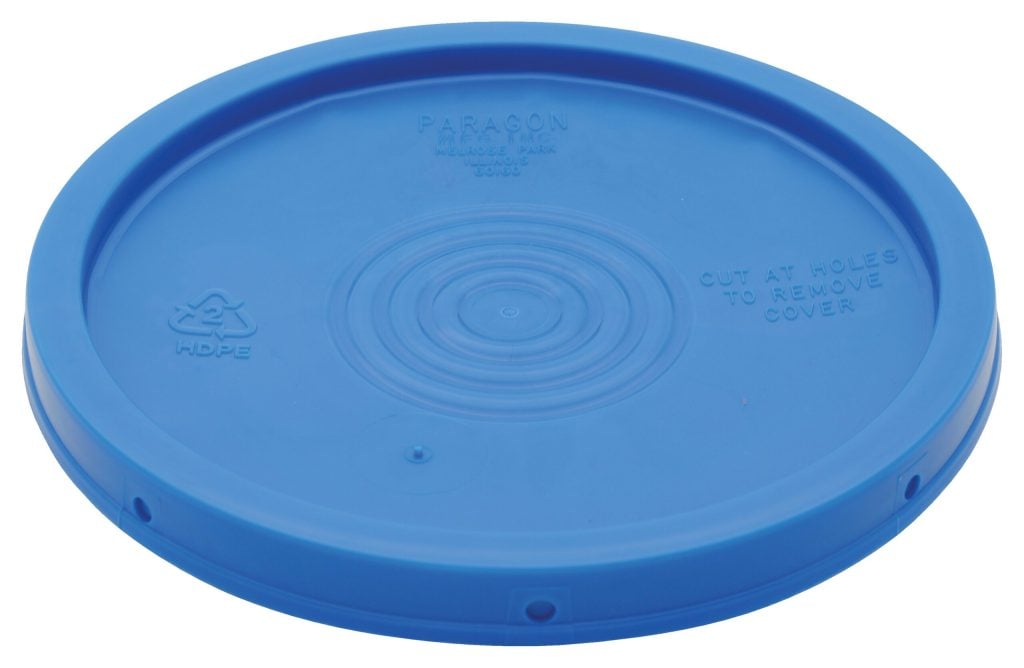 Plastic Lid for use with plastic pail. This plastic lid is constructed of one-hundred percent (100%) prime virgin high density polyethylene (HDPE) and comply with FDA regulations. Suitable for shipping according to D.O.T. standards.