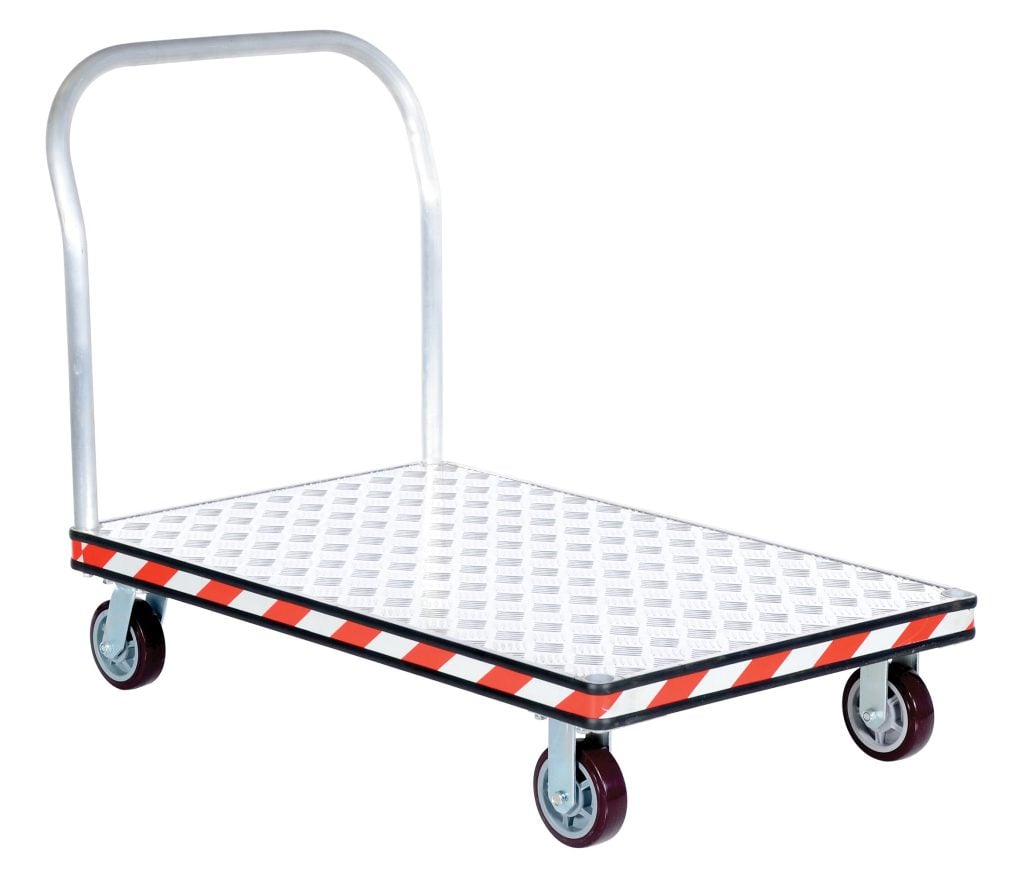 This Lightweight Aluminum Treadplate Platform Truck is constructed of all welded aluminum. The rounded-edge platform protects walls from damage during transit. Includes one removable high-polished steel handle (handle design may vary from what is shown). Ideal for commercial and warehouse areas.