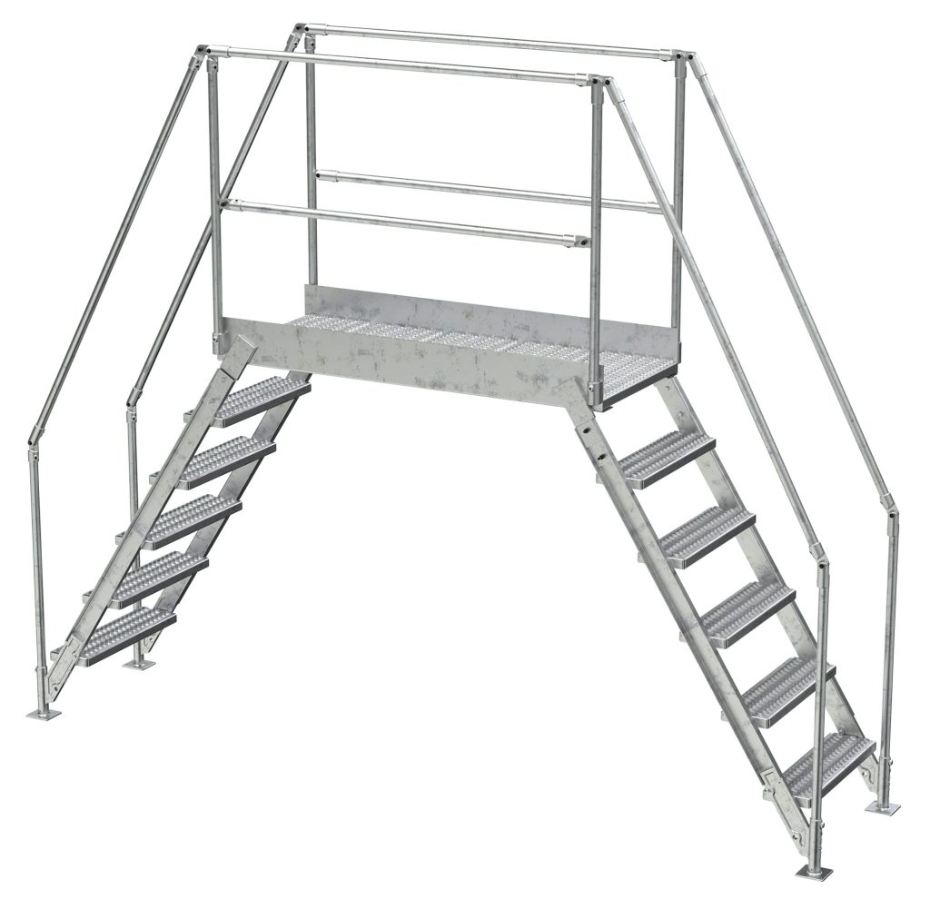 In industrial settings, every inch of floor space matters. With the installation of a cross over ladder, all floor space is able to be utilized fully. An aluminum construction and simple mounting, the ladder can be placed in a permanent location to best fit the floor layout. Serrated steps give the user sure footing going up and down the ladder, while the handrails give added security. Mid and top rails give balance and safety support to users while on the upper platform. Hardware is included.