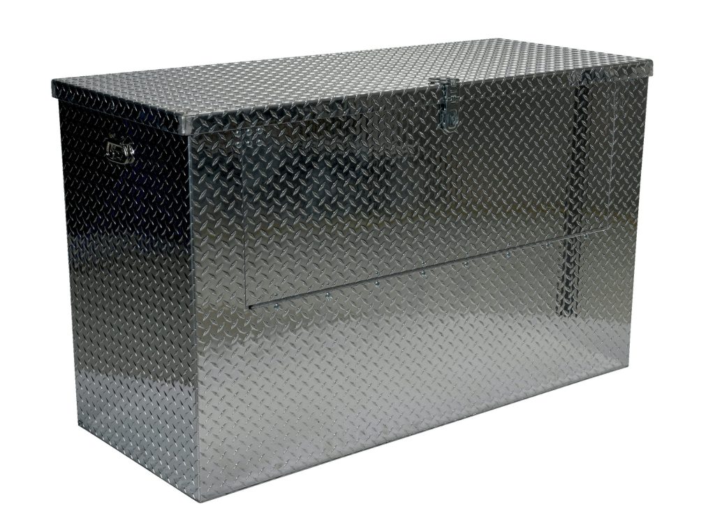 The Aluminum Portable Toolbox is excellent for storing and transporting equipment. The heavy duty welded aluminum tread plate construction is designed to tolerate the toughest of environments. Additional features also include ergonomically friendly carrying handles on each end for smooth manual transporting and a hinged lid which includes a lockable double hinged hasp for added security.