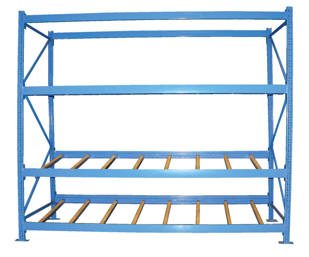 With the Carton Flow Rack, cartons are gravity fed on rollers for convenient first in – first out stock rotating. Choose the quantity of levels that best fits your application. Each level includes four (4) pairs of rollers and each level also includes five divider sections. Units can be bolted together for additional depth.