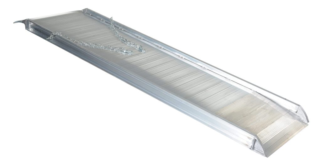 The Aluminum Walk Ramp enables delivery men/women, shippers, and receivers to load and unload trucks when docks are unavailable. Heavy-duty steel chains with steel grab hooks are attached to each side of ramp for safely securing ramp to truck. Constructed of strong aluminum alloy with non-skid tread surface. The ramp is lightweight and easy to handle. This overlapping style rests on the truck bed.