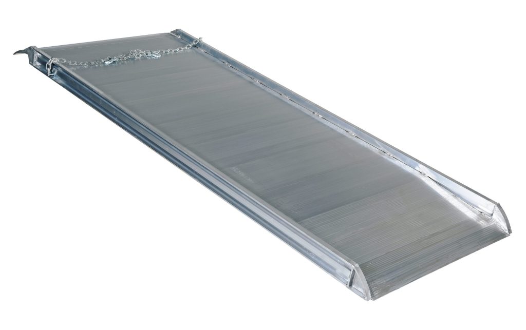 The Aluminum Walk Ramp enables delivery men/women, shippers, and receivers to load and unload trucks when docks are unavailable. Heavy-duty steel chains with steel grab hooks are attached to each side of ramp for safely securing ramp to truck. Constructed of strong aluminum alloy with non-skid tread surface. The ramp is lightweight and easy to handle. This overlapping style rests on the truck bed.