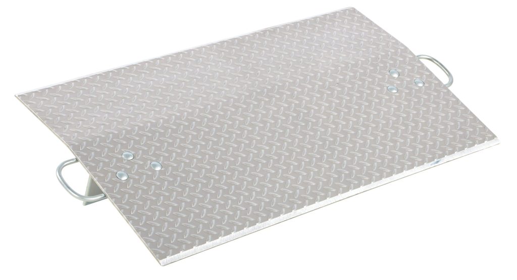 The Aluminum Economizer Dockplate is an economical way to speed up truck loading and unloading. Spans the opening between dock and trailer to allow pallet or hand trucks along with traffic to safely move in and out of the trailer. The dockplate is constructed of high strength, non-skid aluminum alloy tread plate. The lightweight design with bolt on zinc plated legs and handles on each side makes portability easy. Locking legs for OSHA Compliance. Not for use with fork trucks.
