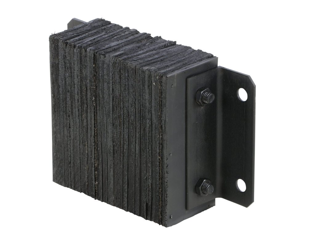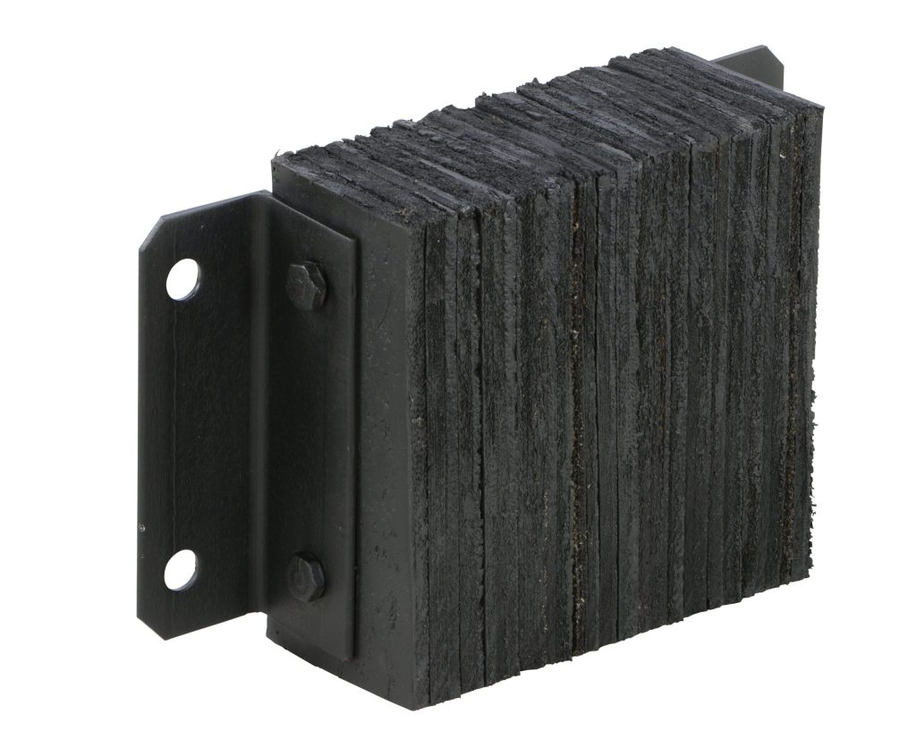 The Laminated Dock Bumper provides durable, economical protection for loading docks and trailers. This unit is constructed of fabric reinforced rubber from recycled truck tires. The pads are laminated between painted structural angles and held together with steel tie rods. Installation is quick and easy by bolting or welding the bumper to the dock. The width is bolt hole center to bolt hole center. Installation hardware sold separately.