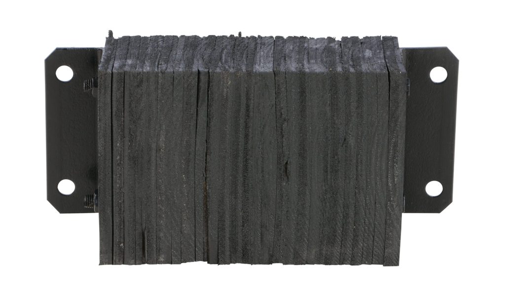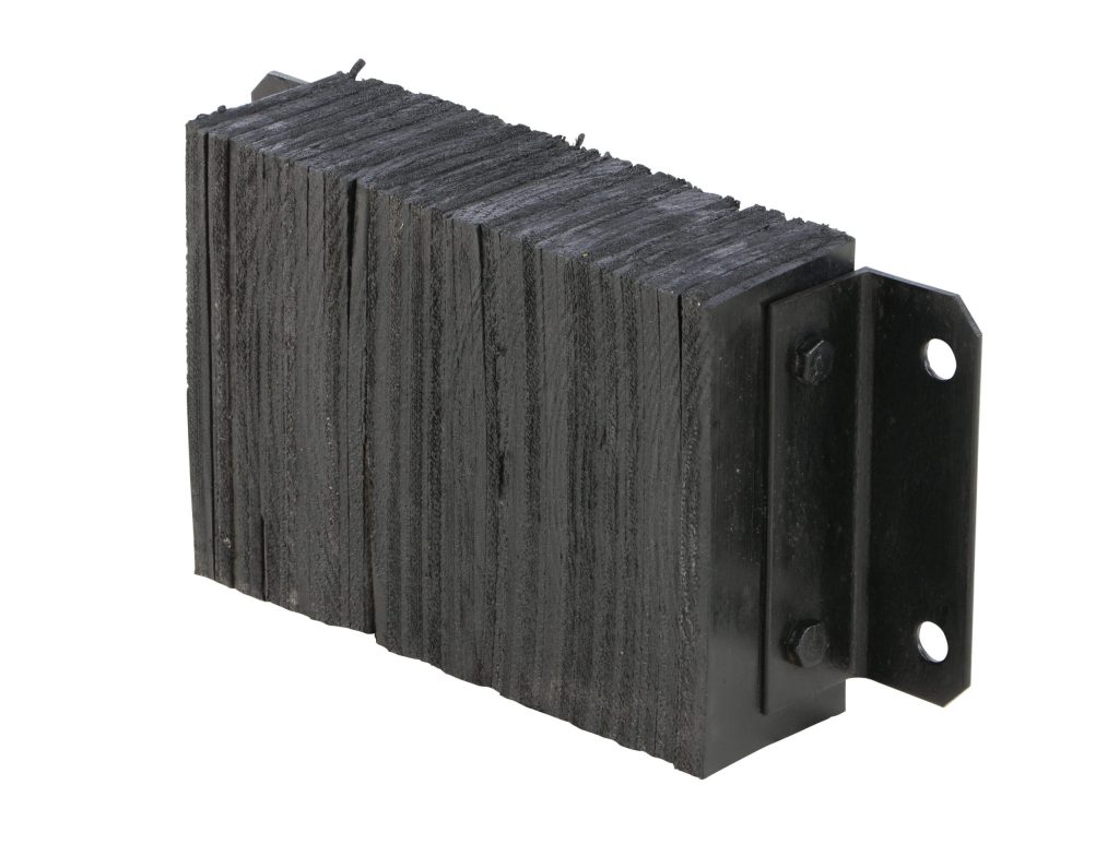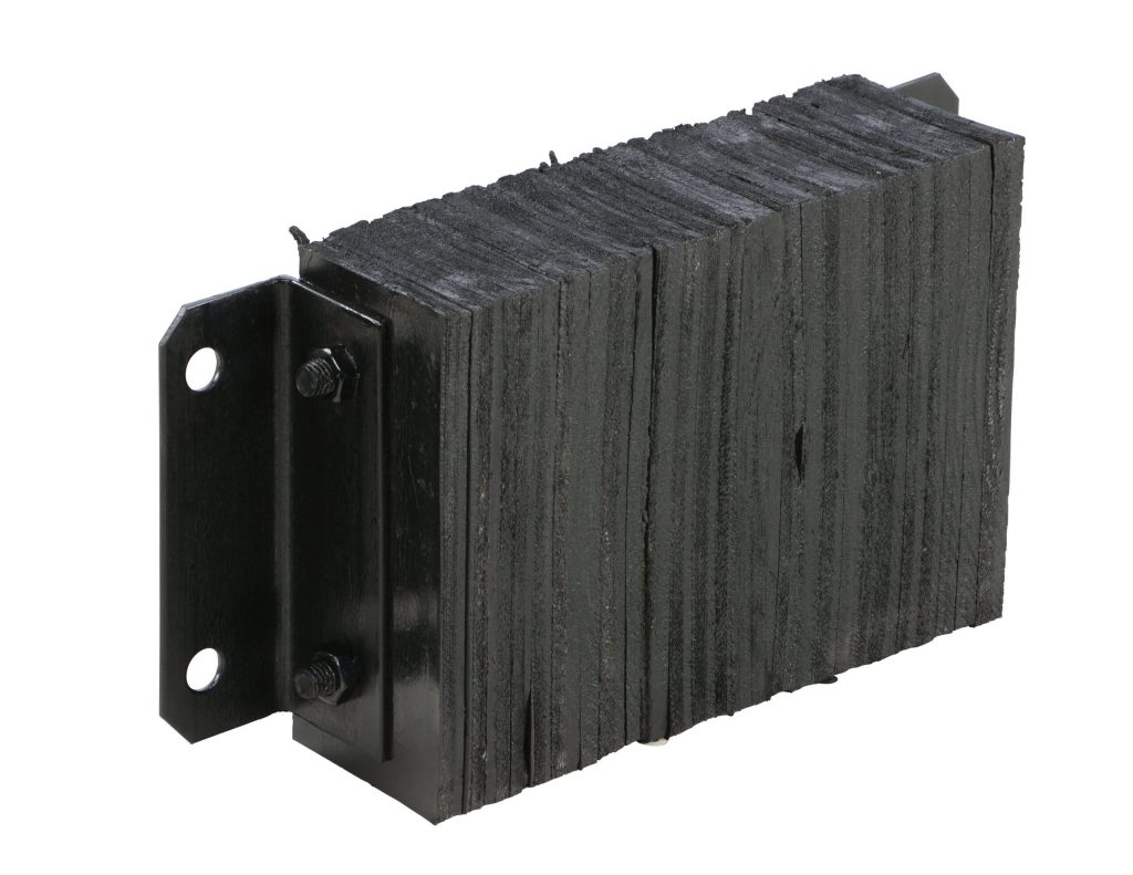 The Laminated Dock Bumper provides durable, economical protection for loading docks and trailers. This unit is constructed of fabric reinforced rubber from recycled truck tires. The pads are laminated between painted structural angles and held together with steel tie rods. Installation is quick and easy by bolting or welding the bumper to the dock. The width is bolt hole center to bolt hole center. Installation hardware sold separately.
