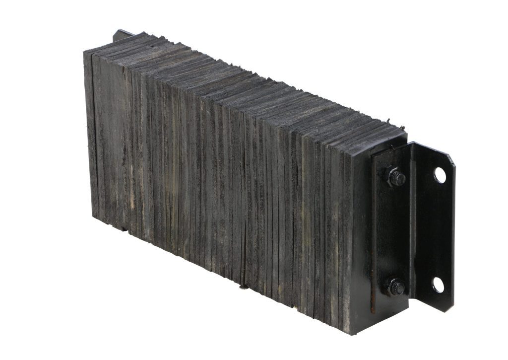 The Laminated Dock Bumper provides durable, economical protection for loading docks and trailers. This unit is constructed of fabric reinforced rubber from recycled truck tires. The pads are laminated between painted structural angles and held together with steel tie rods. Installation is quick and easy by bolting or welding the bumper to the dock. The width is bolt hole center to bolt hole center. Installation hardware sold separately.