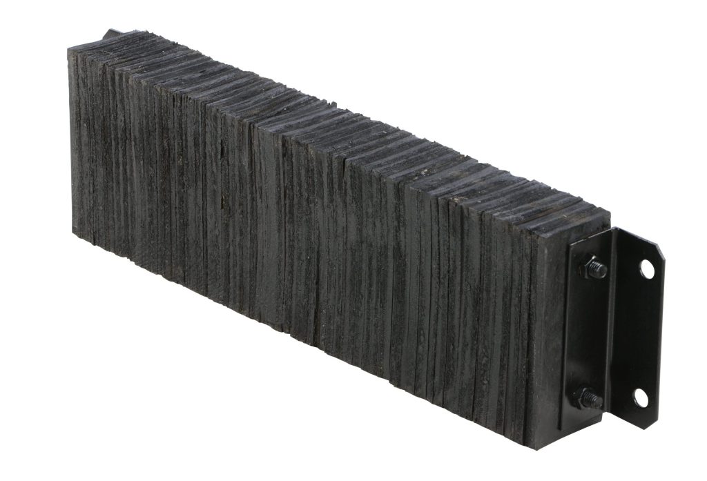The Laminated Dock Bumper provides durable, economical protection for loading docks and trailers. This unit is constructed of fabric reinforced rubber from recycled truck tires. The pads are laminated between painted structural angles and held together with steel tie rods. Installation is quick and easy by bolting or welding the bumper to the dock. The width is bolt hole center to bolt hole center. Installation hardware sold separately.