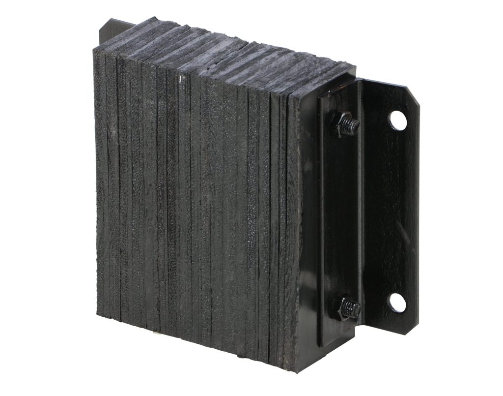 The Laminated Dock Bumper provides durable, economical protection for loading docks and trailers. This unit is constructed of fabric reinforced rubber from recycled truck tires. The pads are laminated between painted structural angles and held together with steel tie rods. Installation is quick and easy by bolting or welding the bumper to the dock. The width is bolt hole center to bolt hole center. Installation hardware sold separately.
