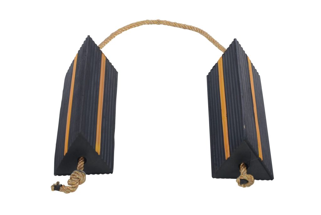 The Rubber Wheel Chock is constructed of reinforced rubber to provide a sure grip on virtually any surface. The curved surface contours to fit tires. Rubber resists tearing, abrasion, ozone weathering, etc. The functional design is durable in all weather conditions. The Airline Chock is suitable for small and large aircraft and have a polypropylene rope.