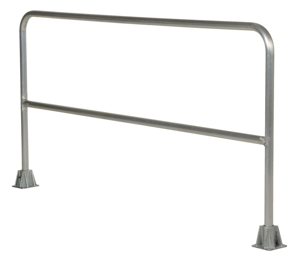 Protect people from uneven walkways and mezzanine drop off’s. This durable Pipe Safety Railing is made of aluminum schedule pipe that saves time when installing. The cast steel sockets accept wood when toe boards are required. Each mounting socket features a polished zinc finish to prohibit rust and requires four lag bolts for proper installation. The handrailing is unfinished for maximum durability and protection. ADKR series safety rail products comply with U.S. Occupational Safety and Health Administration (OSHA) General Industry requirements for guardrail systems in 29 CFR 1910.29.”
