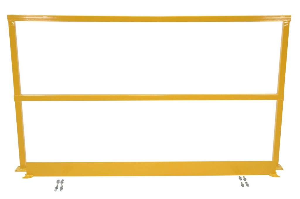 Steel Square Safety Handrail provides an economical way to protect people and machinery. Applications include loading docks, floor openings, walkways, and mezzanines. Highly visible safety yellow powder coat finish.