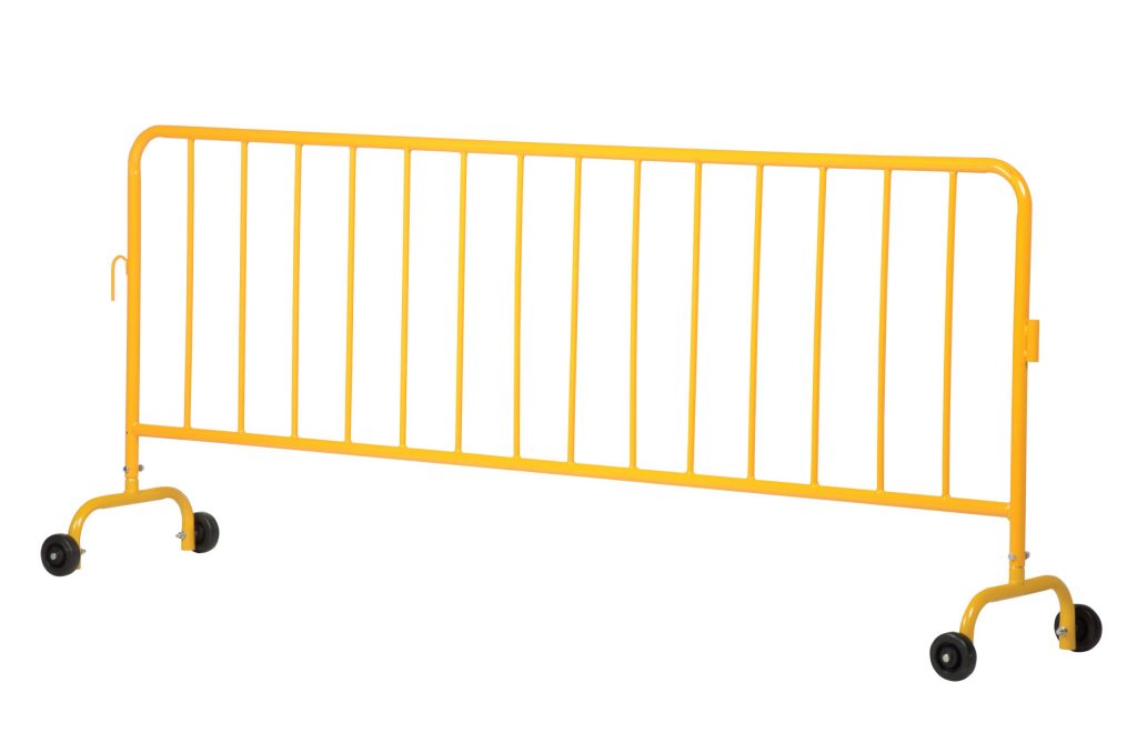 The Light Weight Crowd Control Interlocking Barrier is attractive and the functional design is ideal for directing personnel. Interlocking portable railing has many commercial and industrial applications. Easy to move to meet changing needs. Upright bars are vertically spaced. Each railing includes connectors to attach multiple units together to form long runs. Feet are removable so railing will lay flat for shipping and storage.