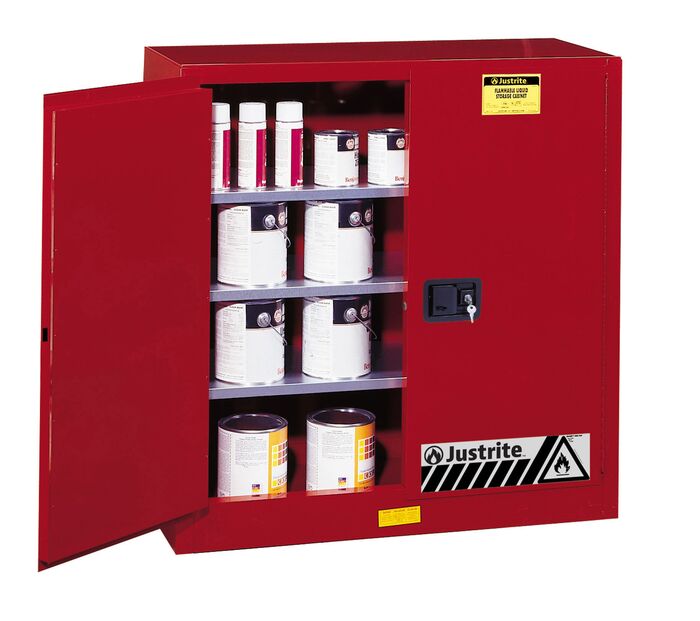 Sure-Grip® EX Combustibles Safety Cabinet for paint and ink, Cap. 40 gal., 3 shelves, 2 m/c dr, Red.