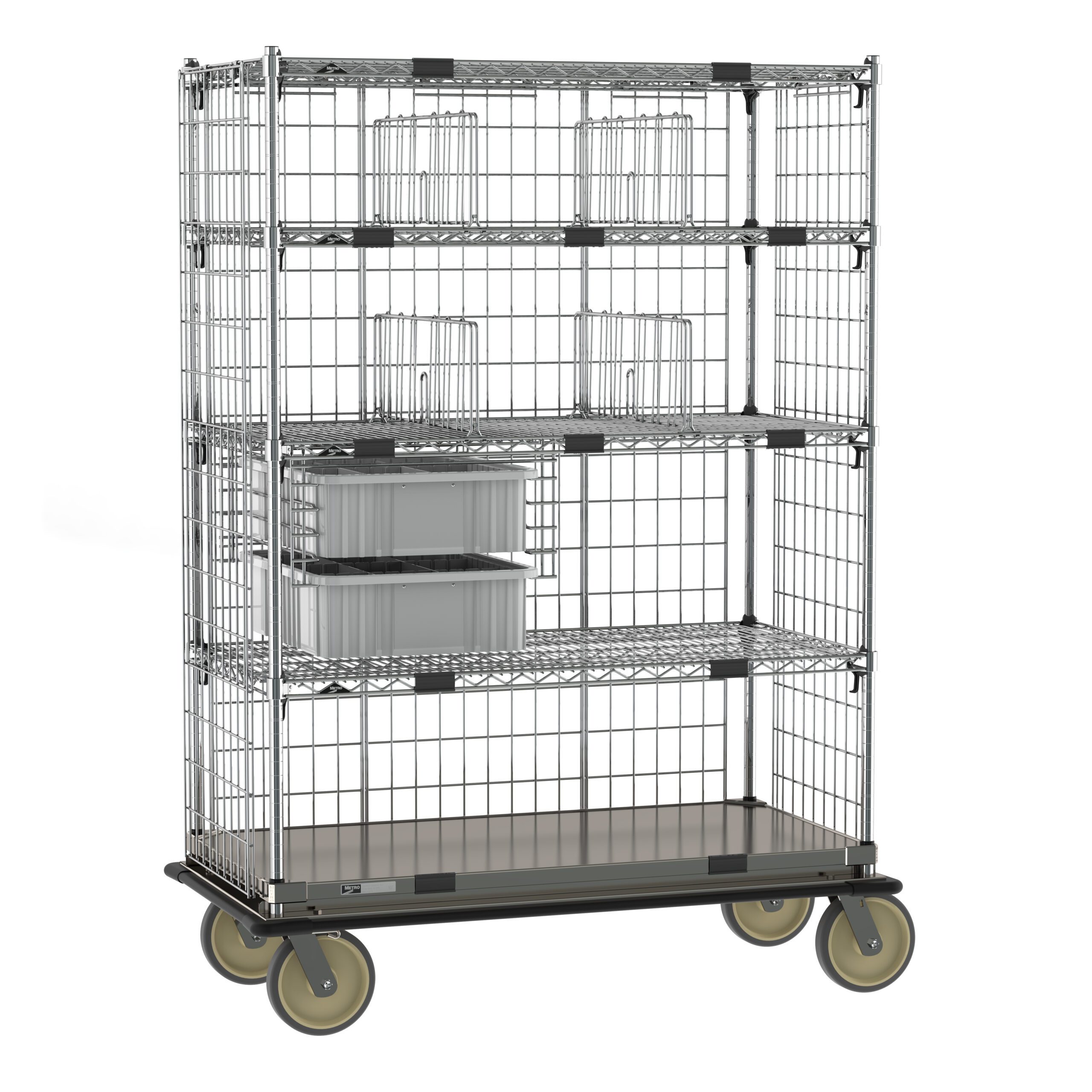 - Additional Features: Aluminum dolly frame with wraparound bumper, side and back enclosure panels, Super Slides, tote boxes with box dividers, shelf dividers, label holders