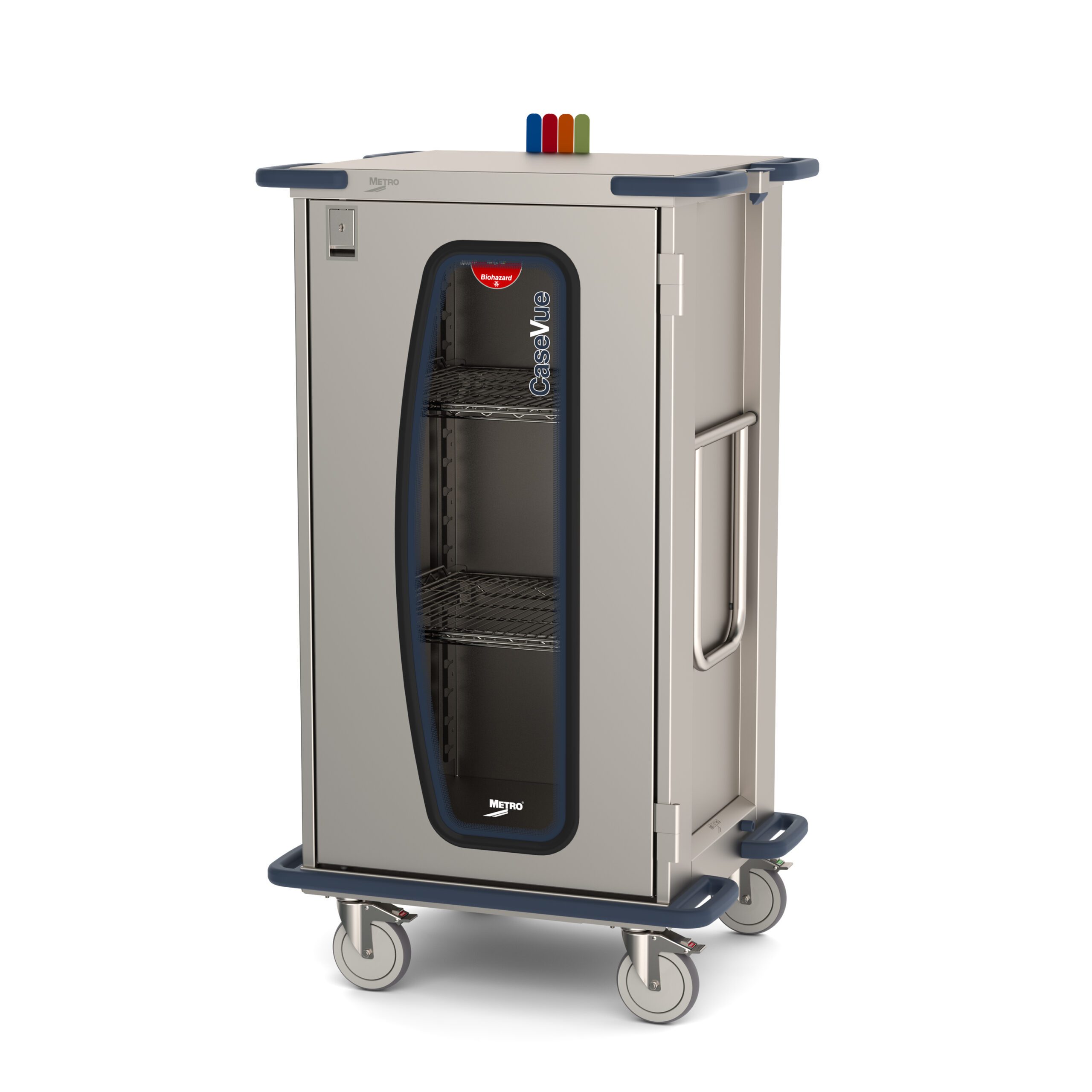 - Color Status Flags: Offers quick visual identification of the cart’s status (e.g., ready, supply needed, biohazard, clean).