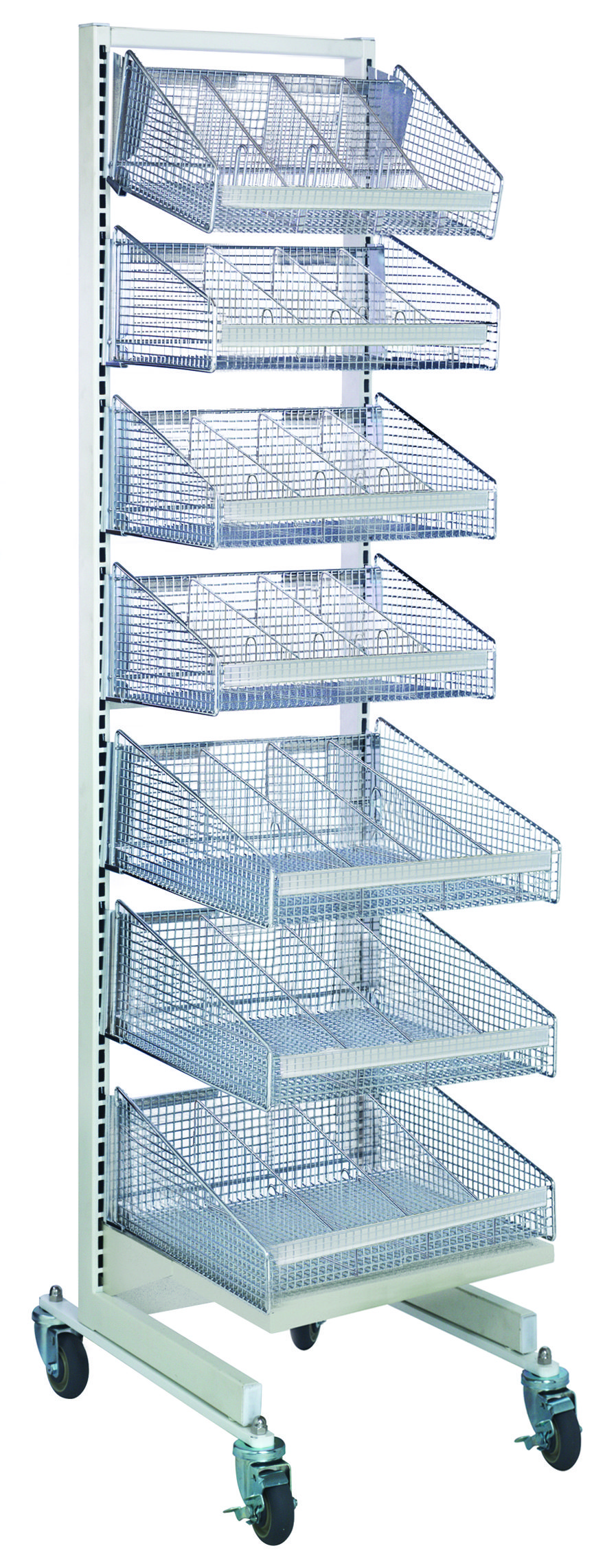 Partition Wall Starter Unit, mobile, single sided, 18″W x 26″D x 74″H, includes: (4) 1017HBC with (6) dividers and (3) 1617HBC with (5) dividers, white and chrome finish
