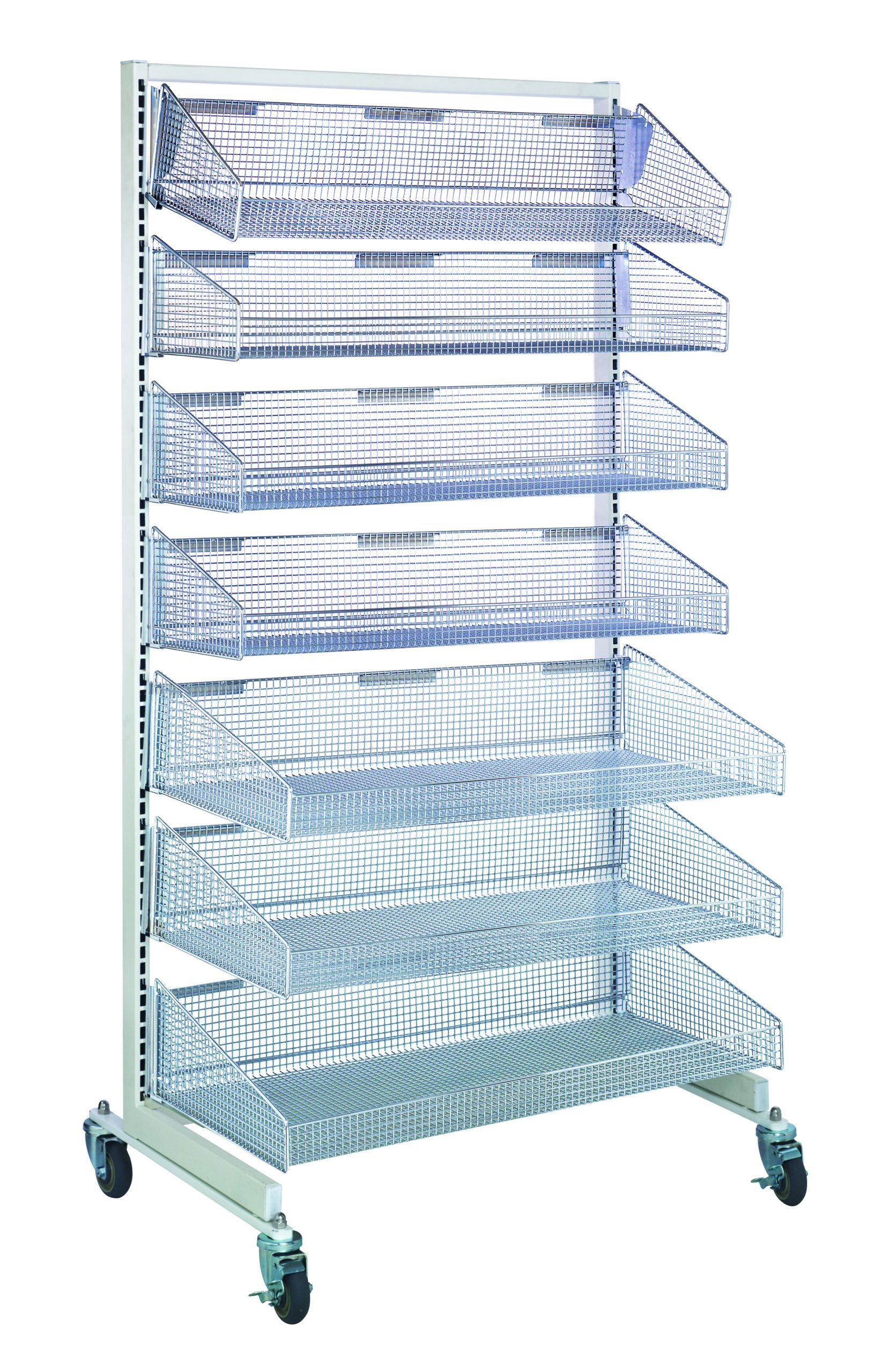 -58%Partition Wall Starter Unit, mobile, single sided, 36″W x 26″D x 74″H, includes: (4) 1035HBC and (3) 1635HBC baskets, white and chrome finish