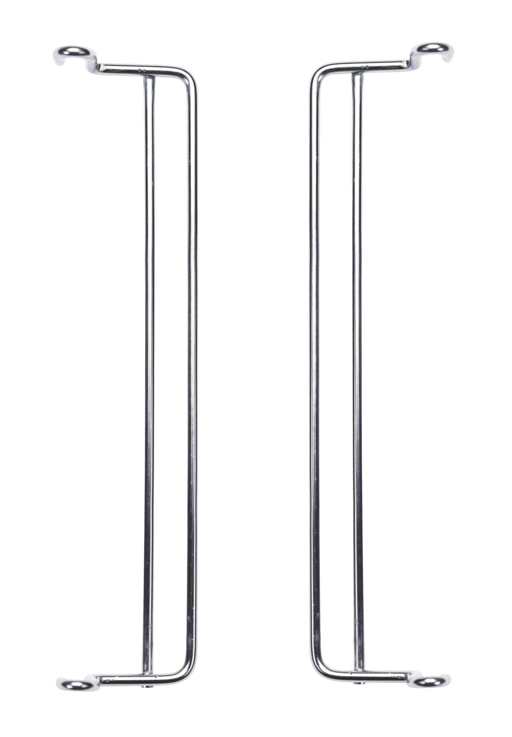 On a white background, the Quantum Side Hanger for QMB539C is shown as two parallel sleek chrome rods with a chrome plated finish and hooked ends, sold as one pair for versatile support or hanging use.