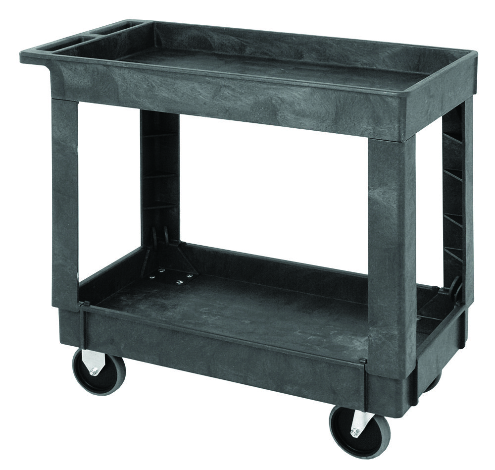 -58%Utility Cart, (2) shelves, 550 lb. capacity, push handle, (4) 5″ casters: (2) rigid and (2) swivel, polymer, gray, shipped KD