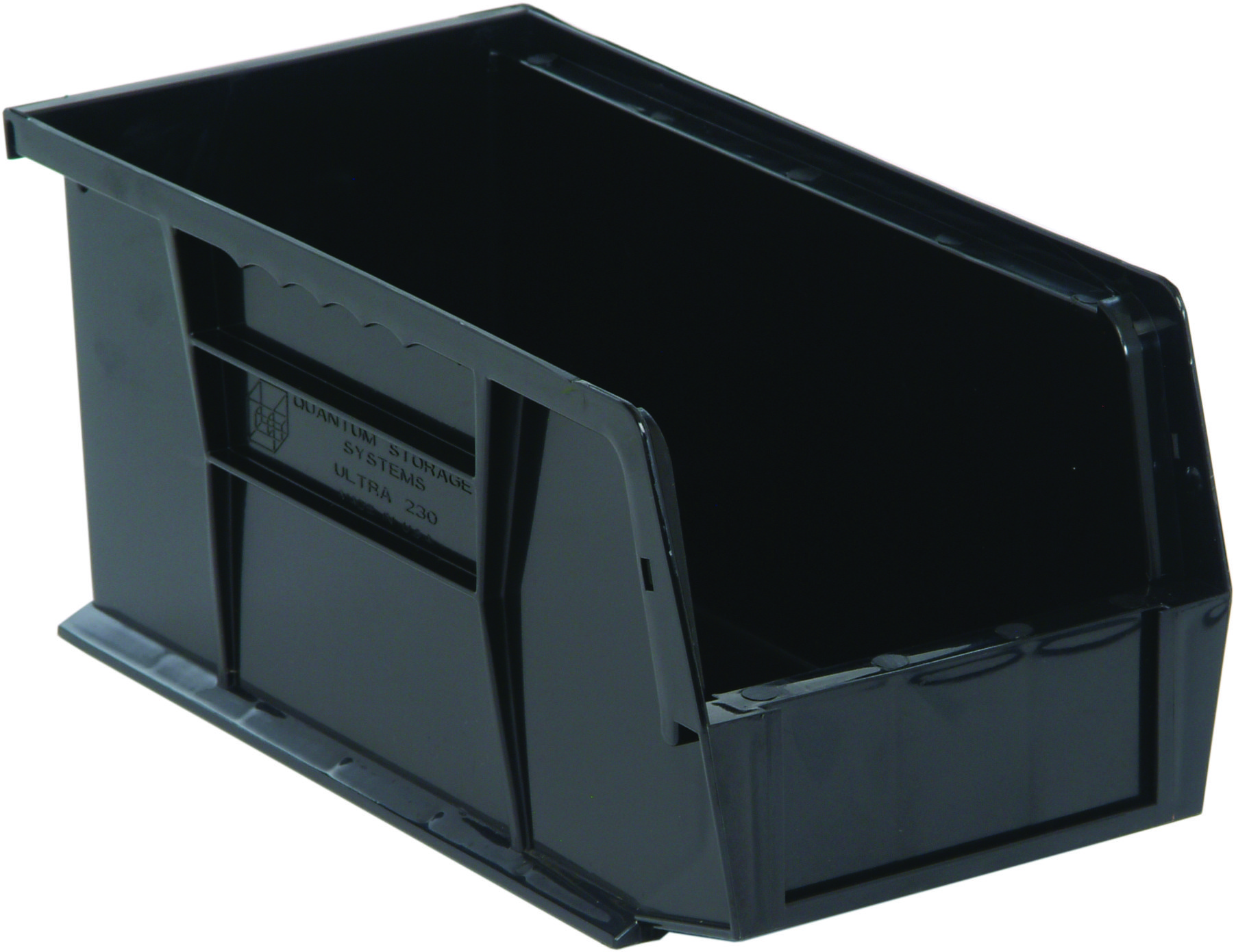 Quantum Bin, Stacking Or Hanging, 5-1/2″W X 10-7/8″D X 5″H, Front/Back/Side Grips, Anti-Slide Lock, (1) Divider Slot, Rear Hanger, Molded-In Label Holder, Polypropylene, Black, Made In USA