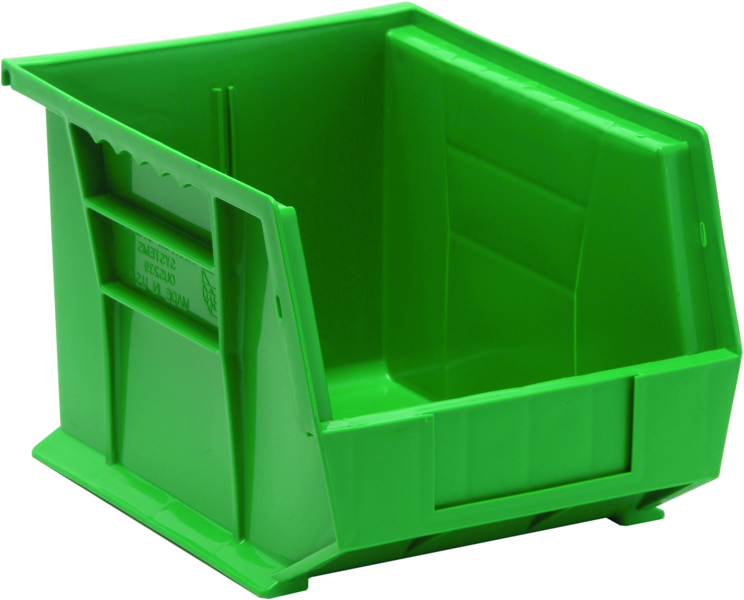 Quantum Bin, Stacking Or Hanging, 8-1/4″W X 10-3/4″D X 7″H, Front/Back/Side Grips, Anti-Slide Lock, (1) Divider Slot, Rear Hanger, Molded-In Label Holder, Polypropylene, Green, Made In USA