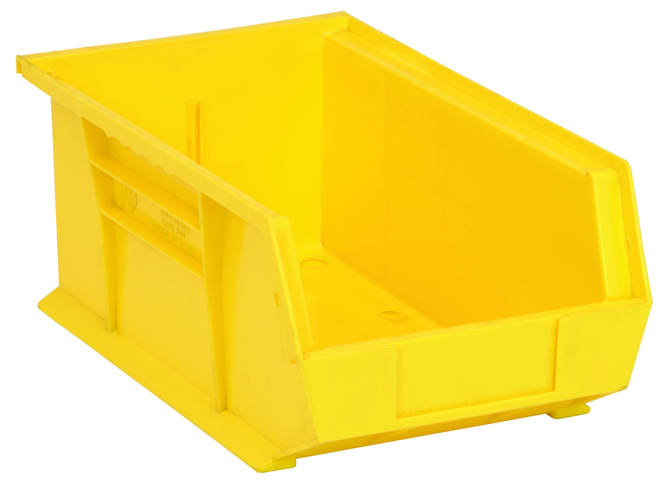 Quantum Bin, Stacking Or Hanging, 8-1/4″W X 13-5/8″D X 6″H, Front/Back/Side Grips, Anti-Slide Lock, (1) Divider Slot, Rear Hanger, Molded-In Label Holder, Polypropylene, Yellow, Made In USA