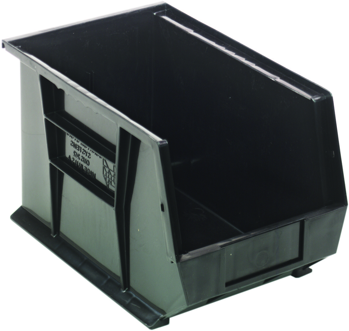 Quantum Bin, Stacking Or Hanging, 8-1/4″W X 13-5/8″D X 8″H, Front/Back/Side Grips, Anti-Slide Lock, (1) Divider Slot, Rear Hanger, Molded-In Label Holder, Polypropylene, Black, Made In USA