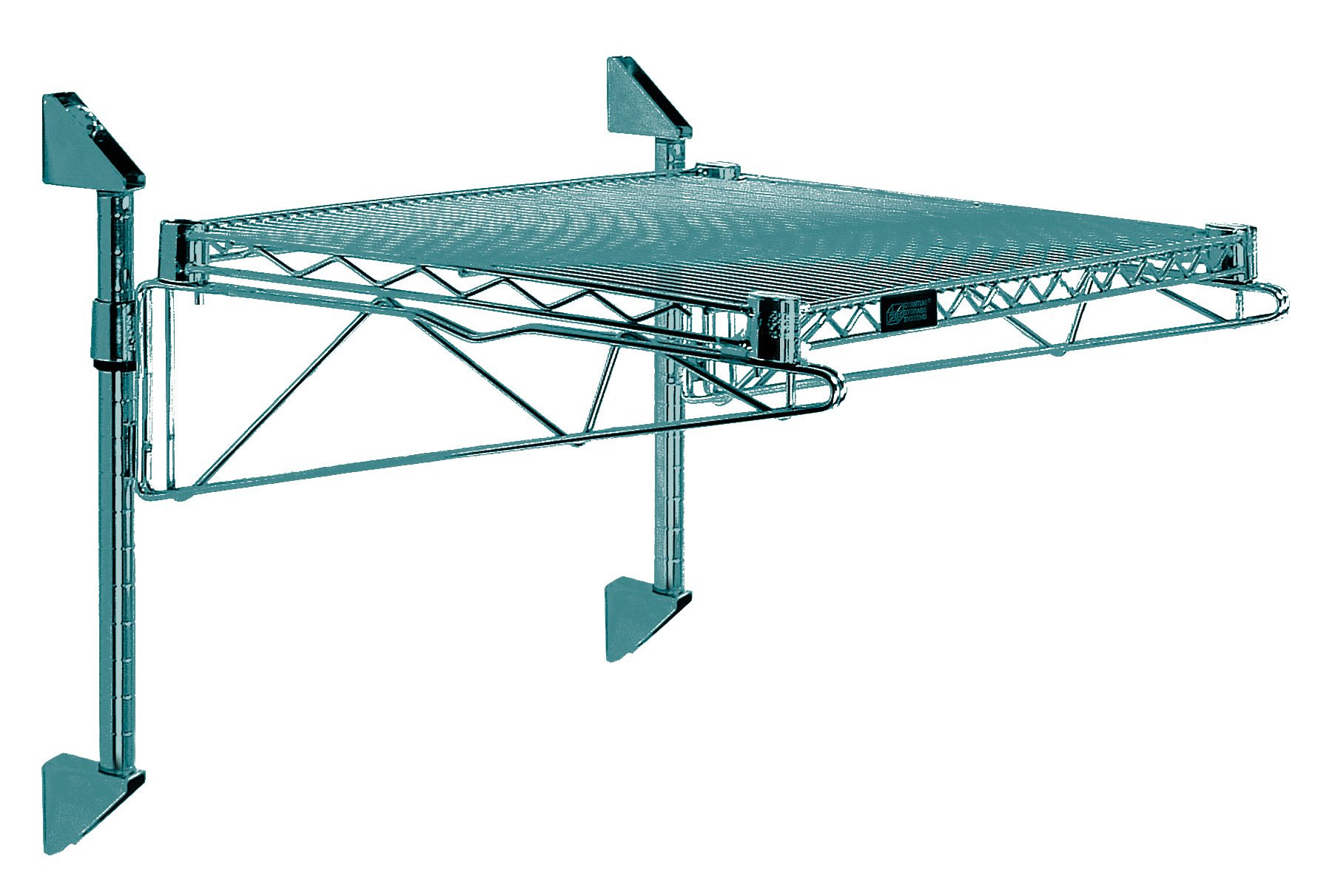 -58%Cantilever Single Shelf Post Wall Mount, (1) 30″W x 21″D shelf, (2) 14″ posts, (2) 21″ cantilevers and (2) mounting brackets, green epoxy antimicrobial finish, NSF