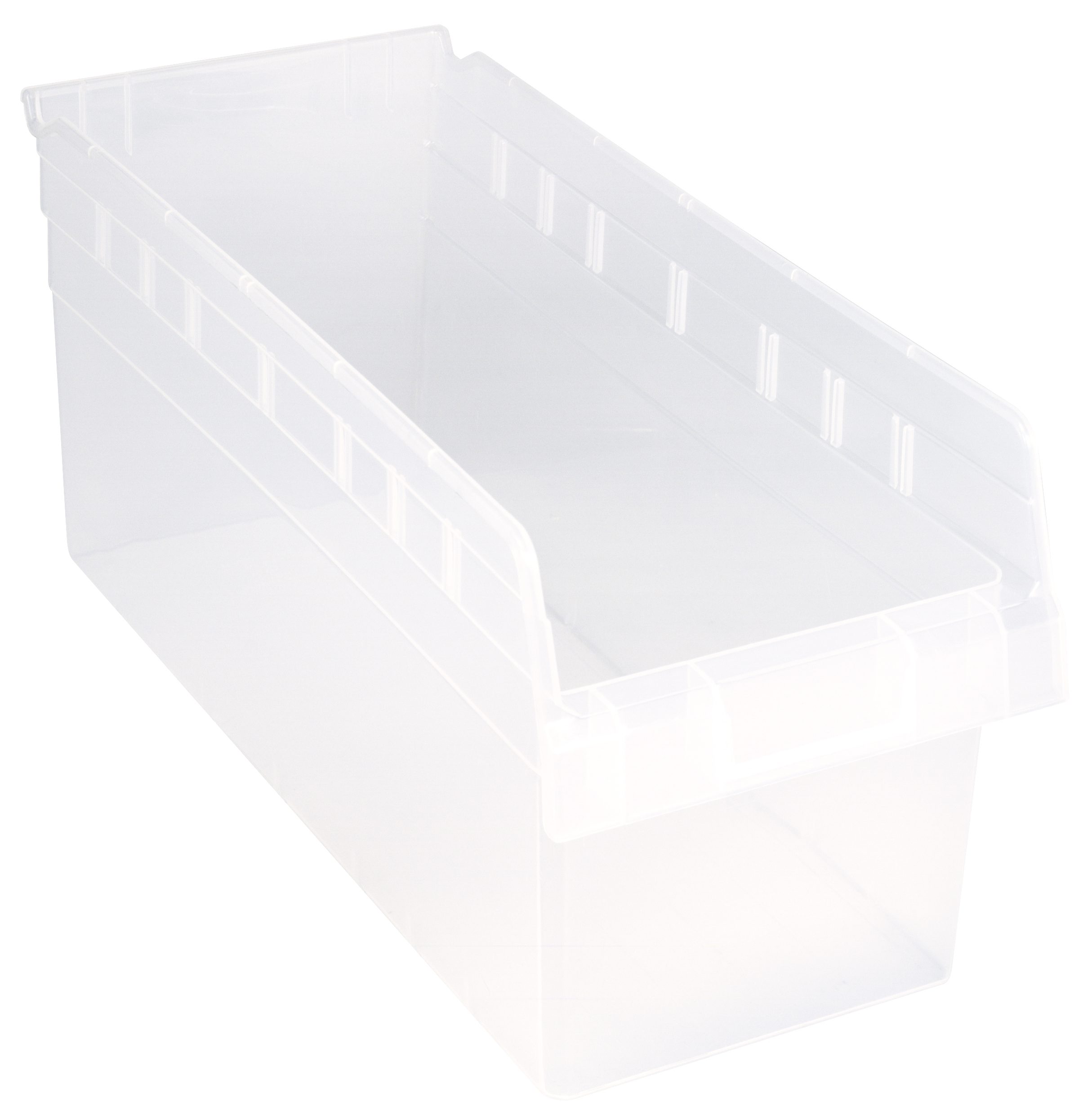 Quantum Economy Shelf Bin, Nesting, 17-7/8″W X 8-3/8″D X 4″H, (7) Divider Slots, Rear Hanglock, Molded-In Label Holder, Clear Polyropylene, Made In USA – QM-QSB808CL