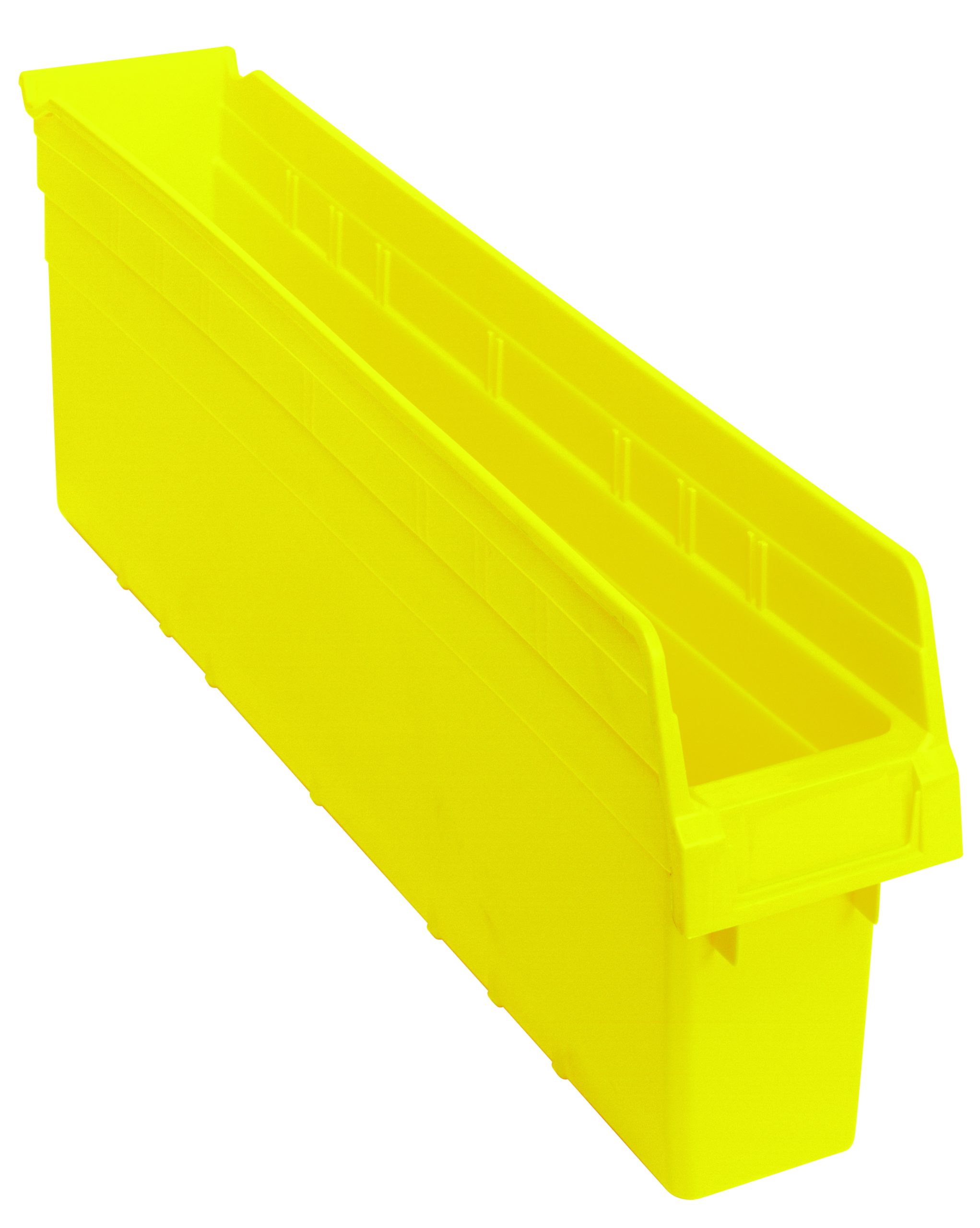 Quantum Economy Shelf Bin, Nesting, 23-5/8″W X 4-1/8″D X 4″H, (7) Divider Slots, Rear Hanglock, Molded-In Label Holder, Yellow Polyropylene, Made In USA