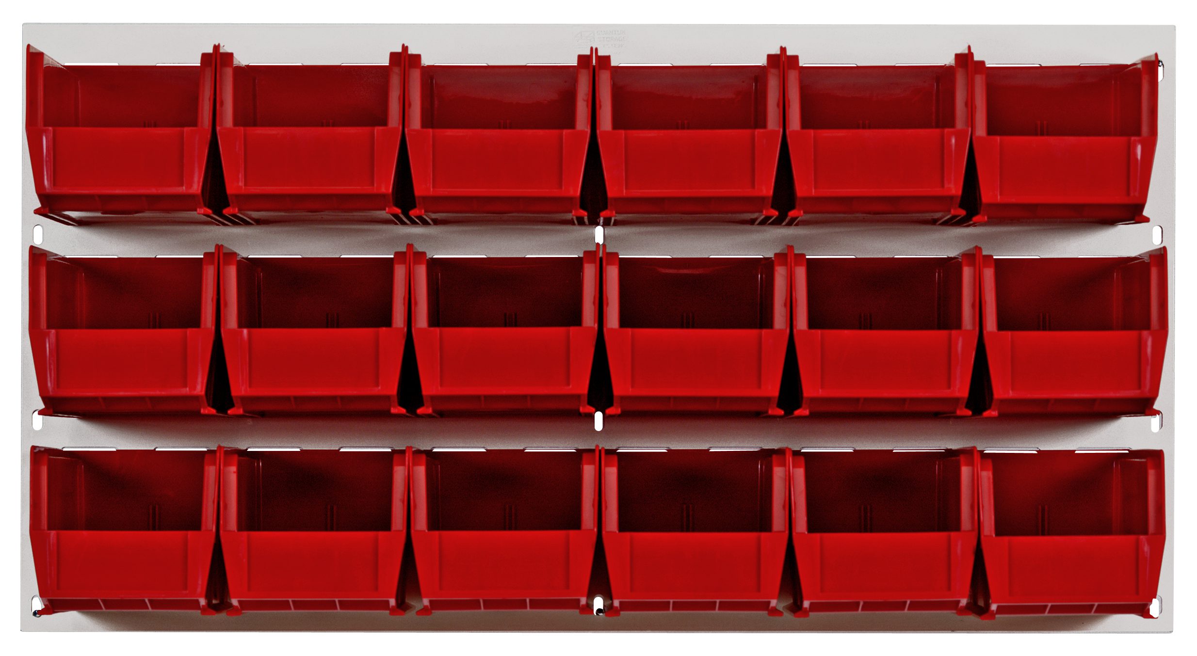 Quantum Louvered Panel, Wall Mounted, 36″L X 11″D X 19″H, Includes: (18) QUS230, Clear Bins, Heavy-Duty 16 Gauge Cold Rolled Steel, Oyster White Enamel Coated Finish (Mounting Hardware Not Included) – QM-QLP-3619HC-230-18RD