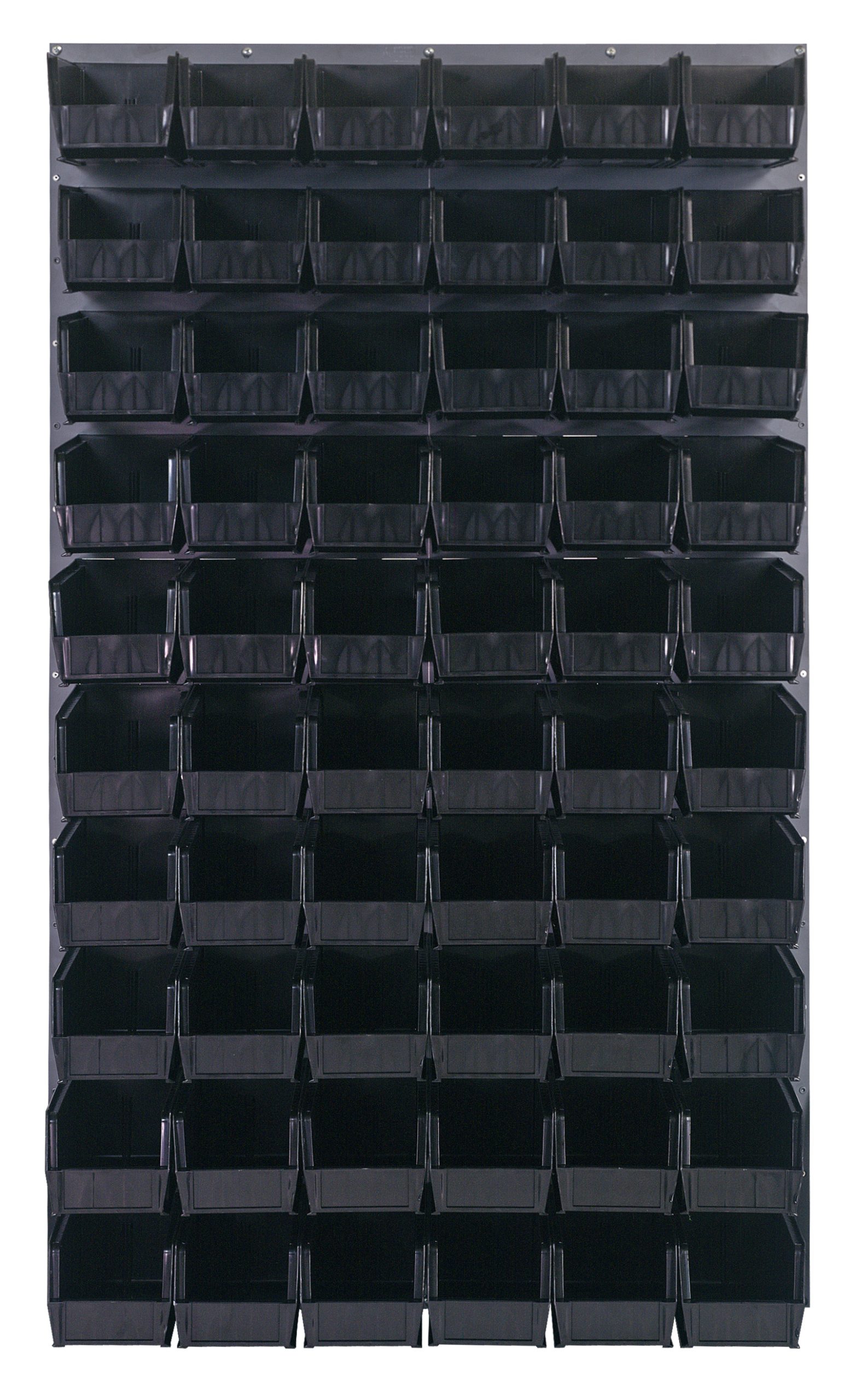 Louvered Panel, wall mounted, 36″L x 11″D x 61″H, includes: (60) QUS230, black bins, heavy-duty 16 gauge cold rolled steel, gray enamel coated finish (mounting hardware not included)