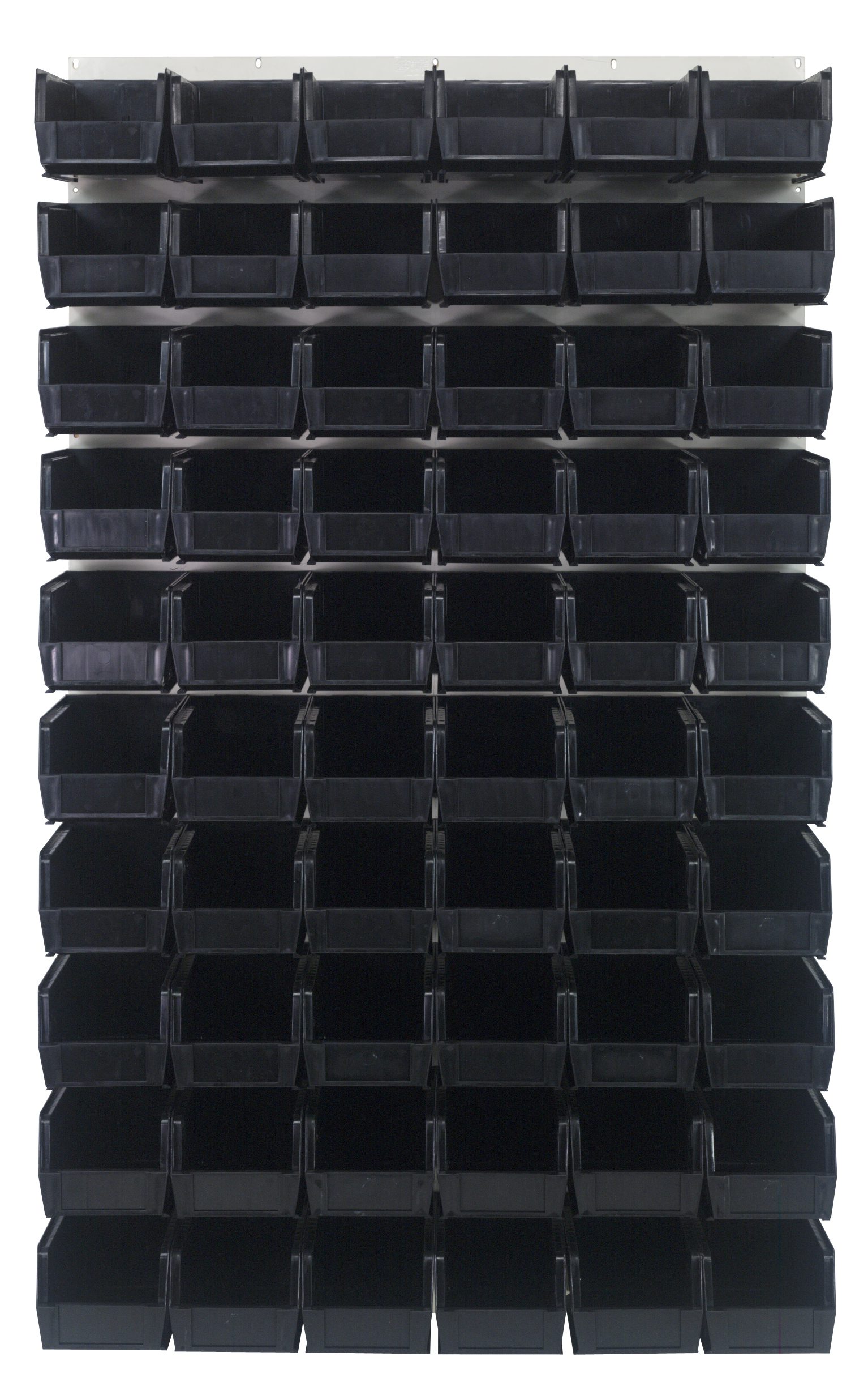 Quantum Louvered Panel, Wall Mounted, 36″L X 11″D X 61″H, Includes: (60) QUS230, Black Bins, Heavy-Duty 16 Gauge Cold Rolled Steel, Oyster White Enamel Coated Finish (Mounting Hardware Not Included)