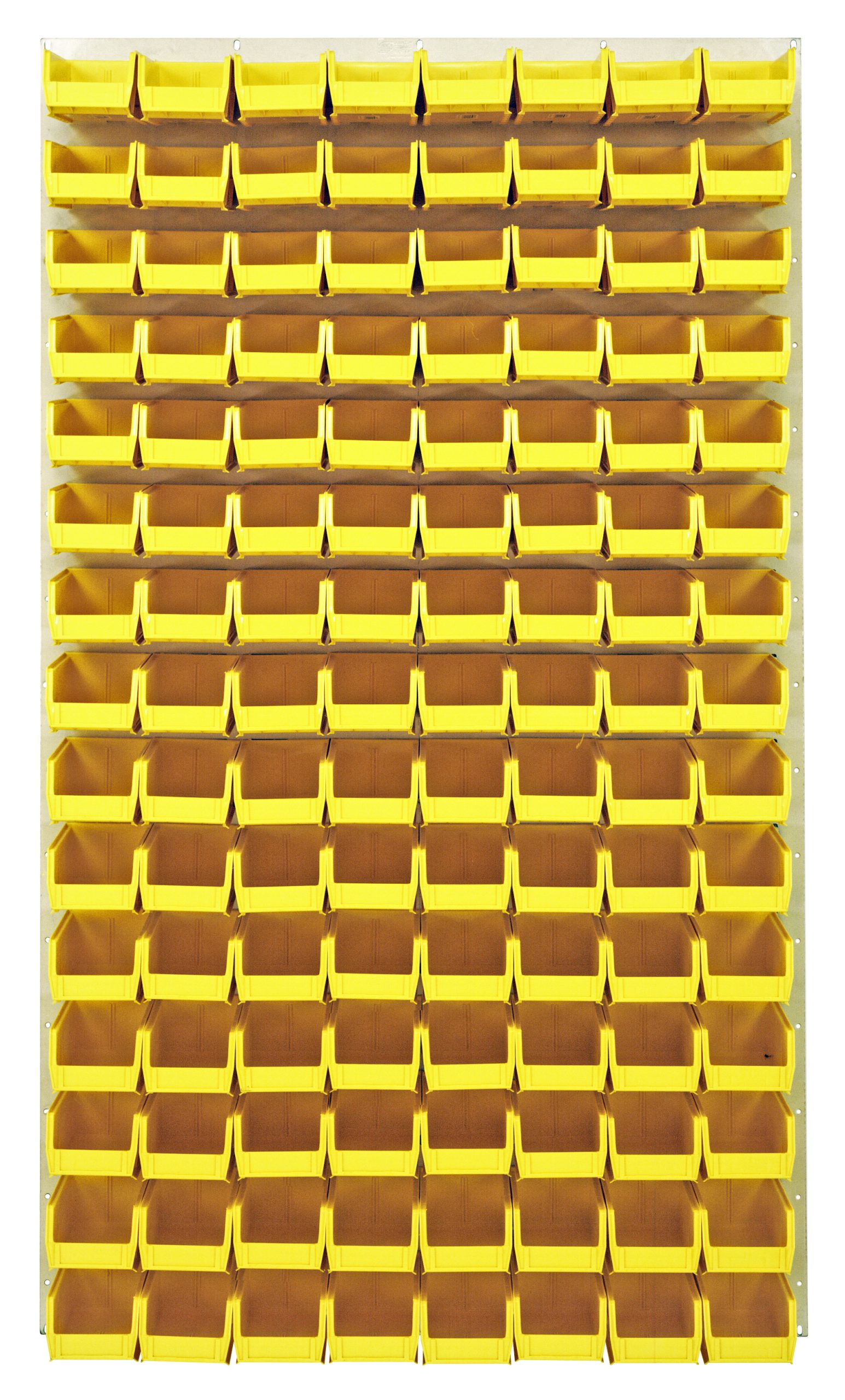 Quantum Louvered Panel, Wall Mounted, 36″L X 8″D X 61″H, Includes: (120) QUS220, Clear Bins, Heavy-Duty 16 Gauge Cold Rolled Steel, Oyster White Enamel Coated Finish (Mounting Hardware Not Included) – QM-QLP-3661HC-220-120YL